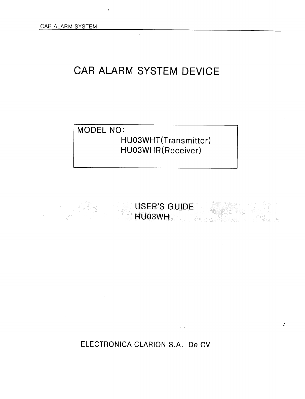 Electronica Clarion de C V HU03WHT Wireless Remote Transmitter (Vehicle Security Syst User Manual USERS MANUAL