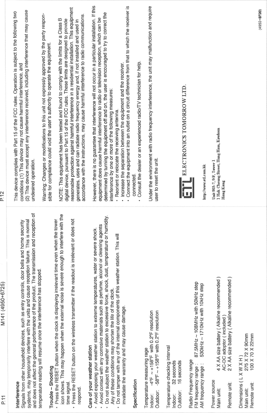 Electronics Tomorrow 495091108 Weather Station Receiver User Manual