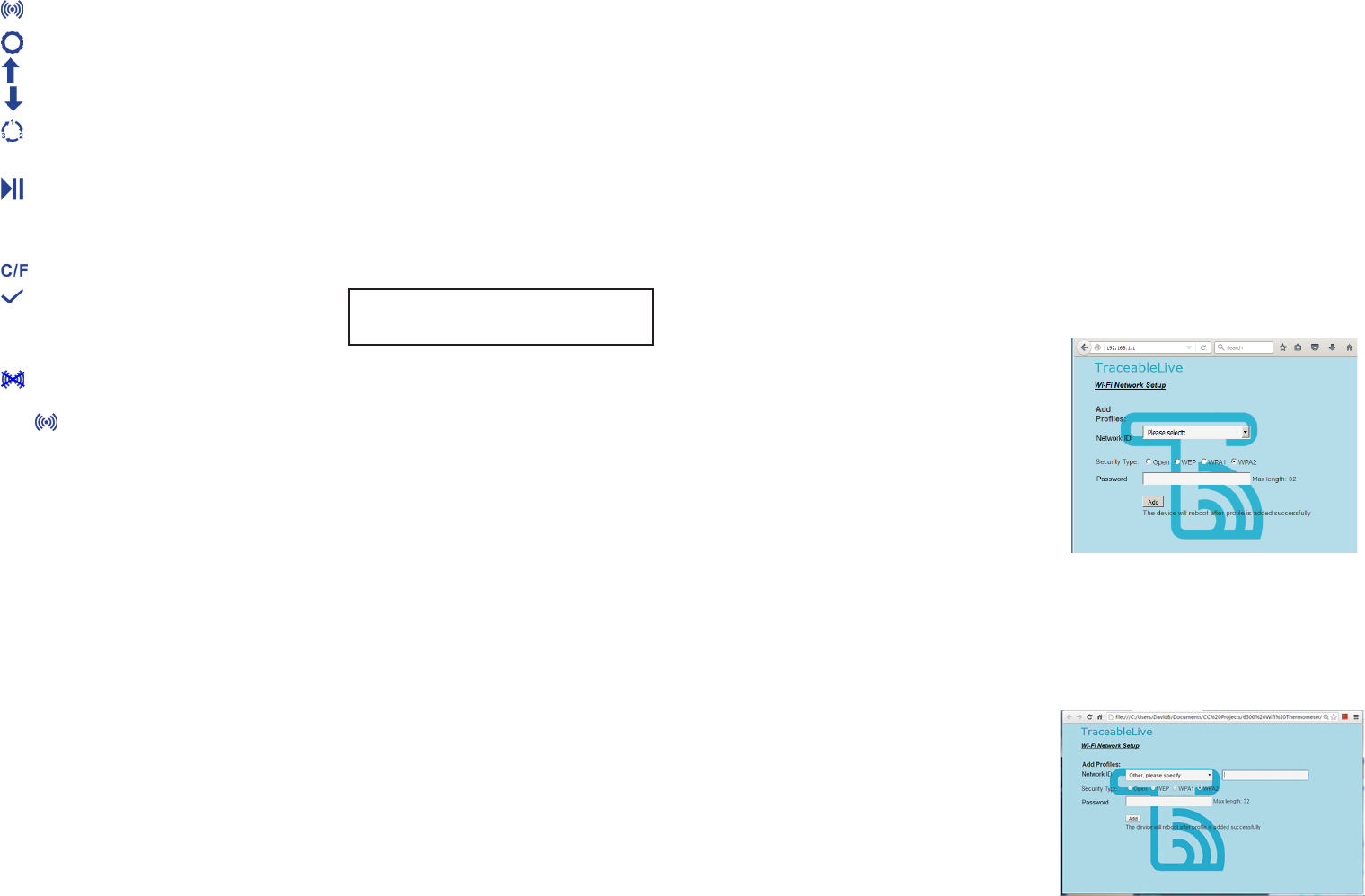 Note: “WiFi enabled” is indicated by the ashing WiFi