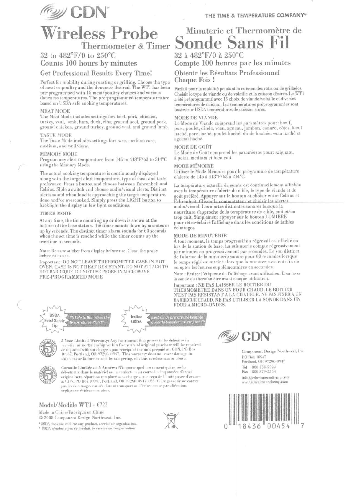 Electronics Tomorrow Ltd. Wireless Probe Thermometer and Timer Users Manual