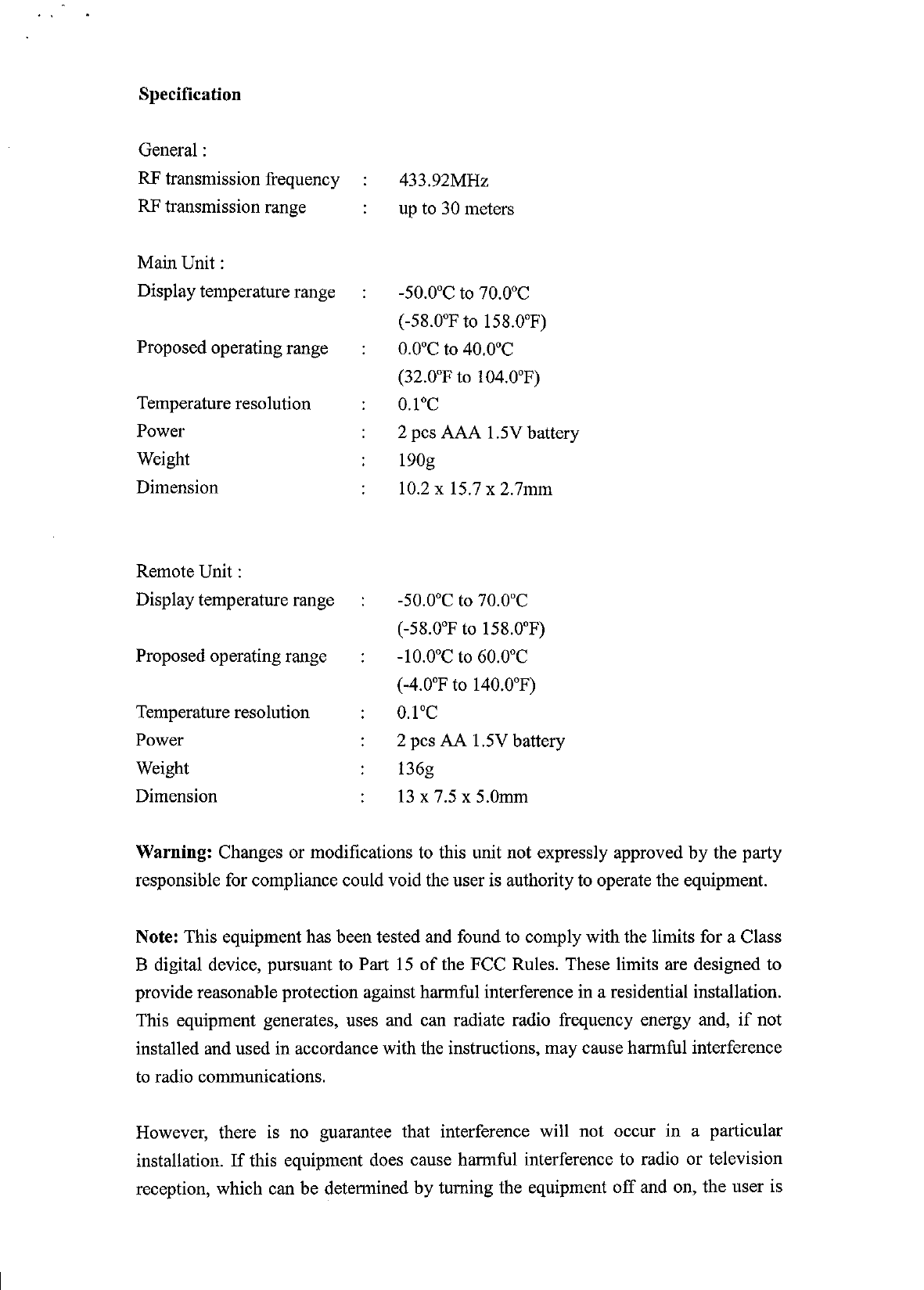 Electronics Tomorrow 706090402 Remote Thermo Transmitter User Manual