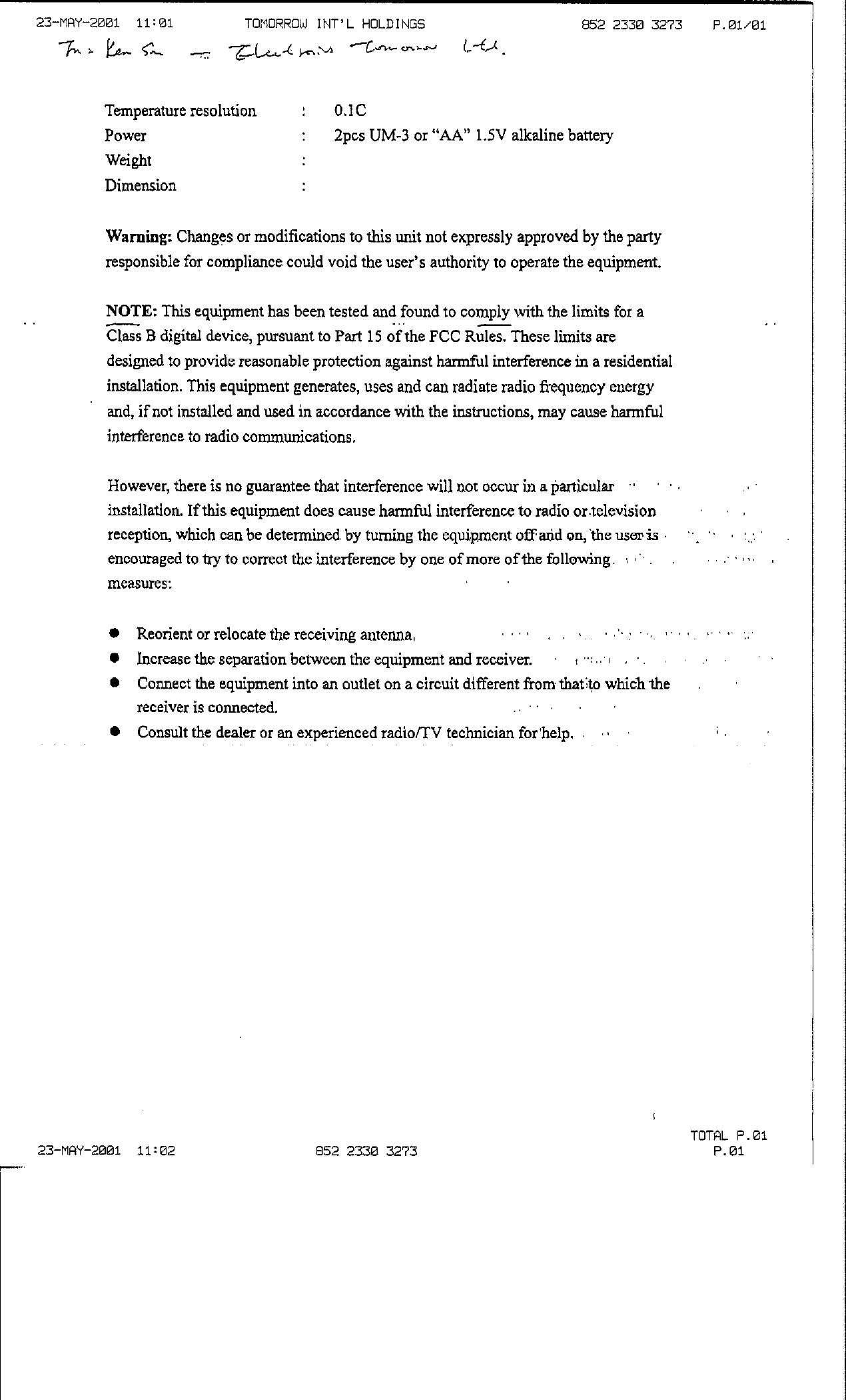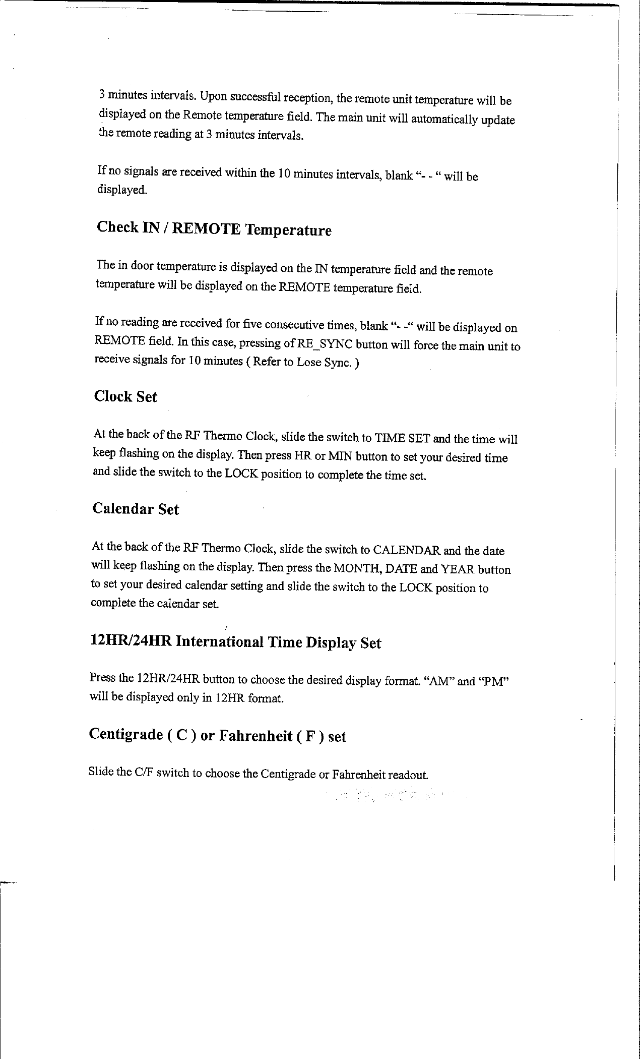 Electronics Tomorrow 707090401 Battery Operated RF Clock Transmitter User Manual