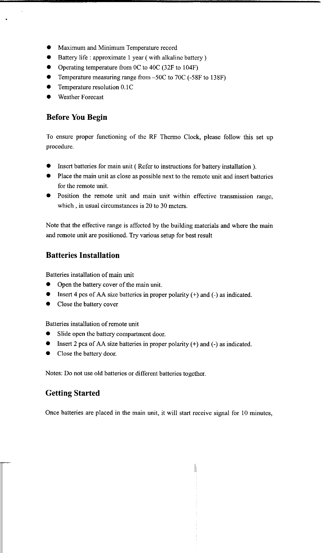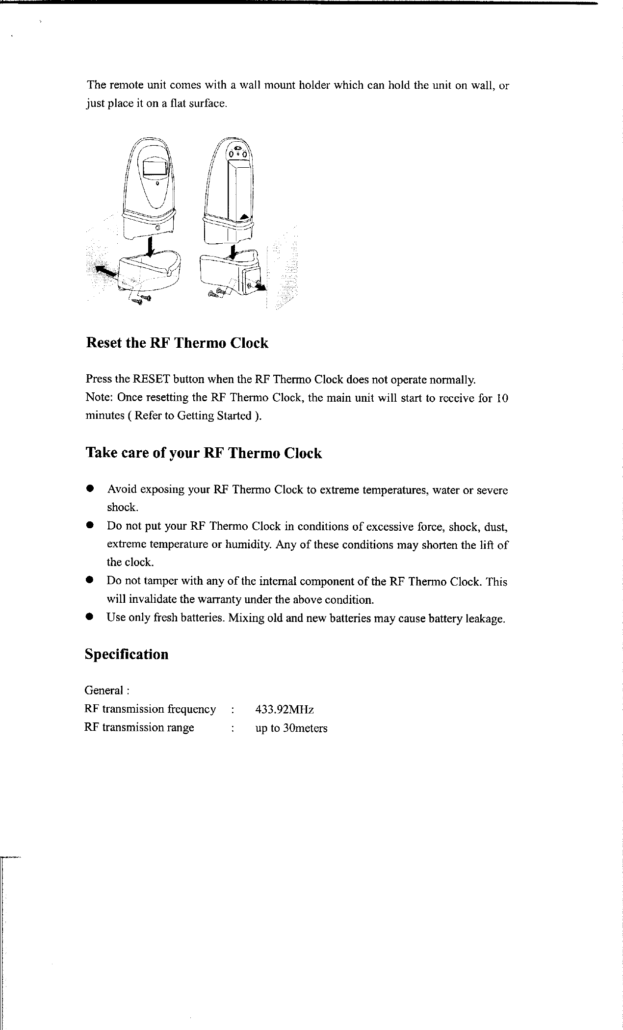 Electronics Tomorrow Ltd. Battery Operated RF Clock Receiver Users Manual