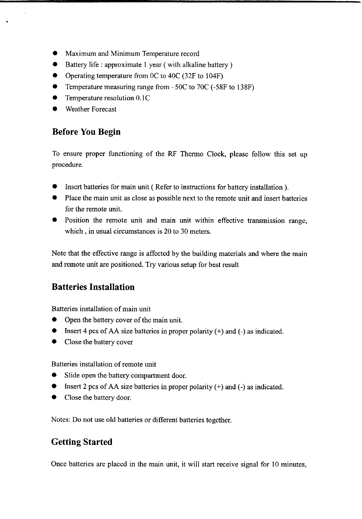 Electronics Tomorrow Ltd. Battery Operated RF Clock Receiver Users Manual