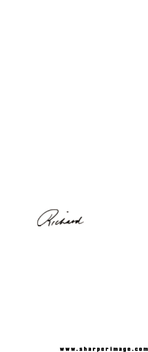 Thank you for your purchase of a Sharper Image product.