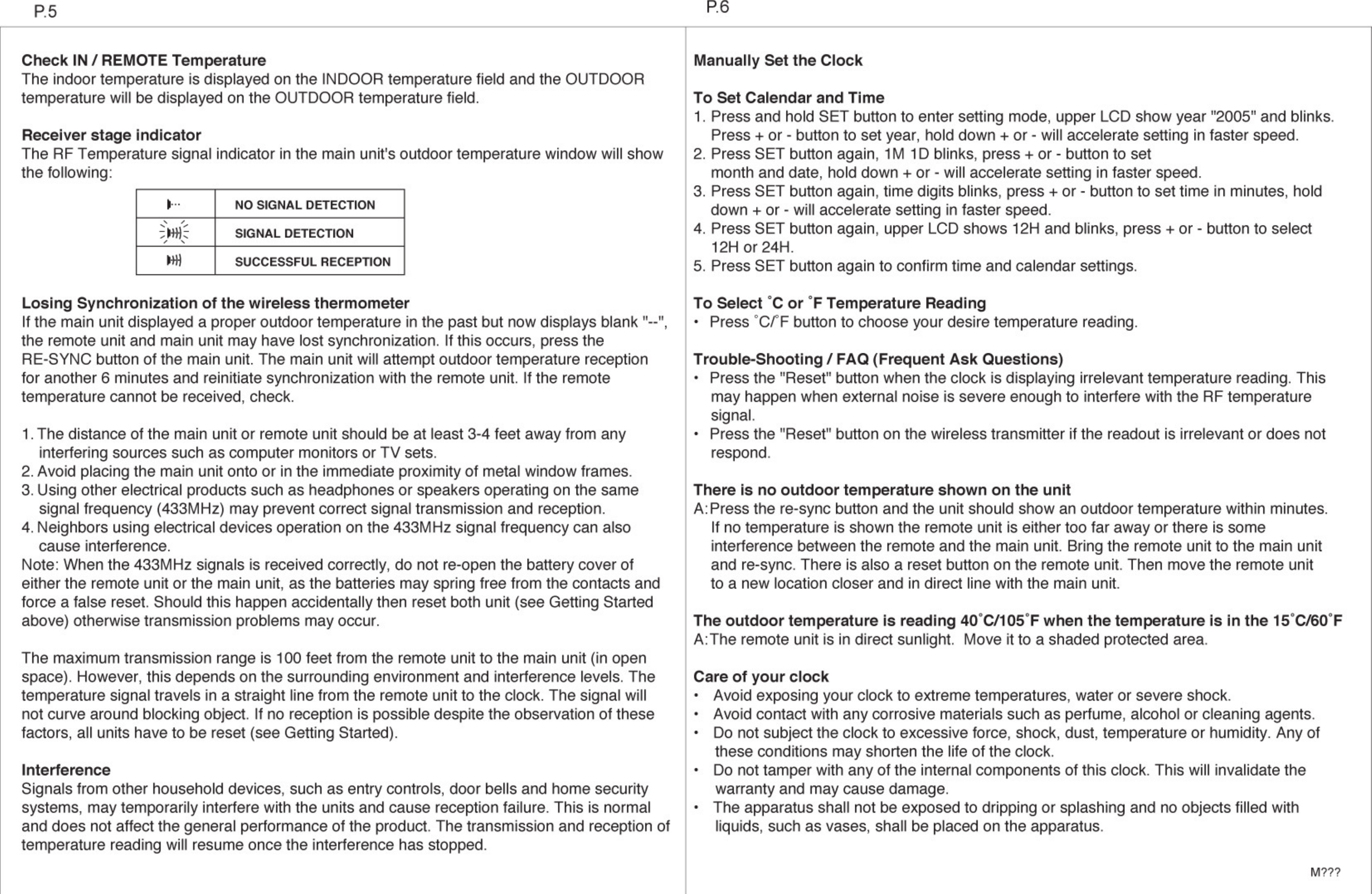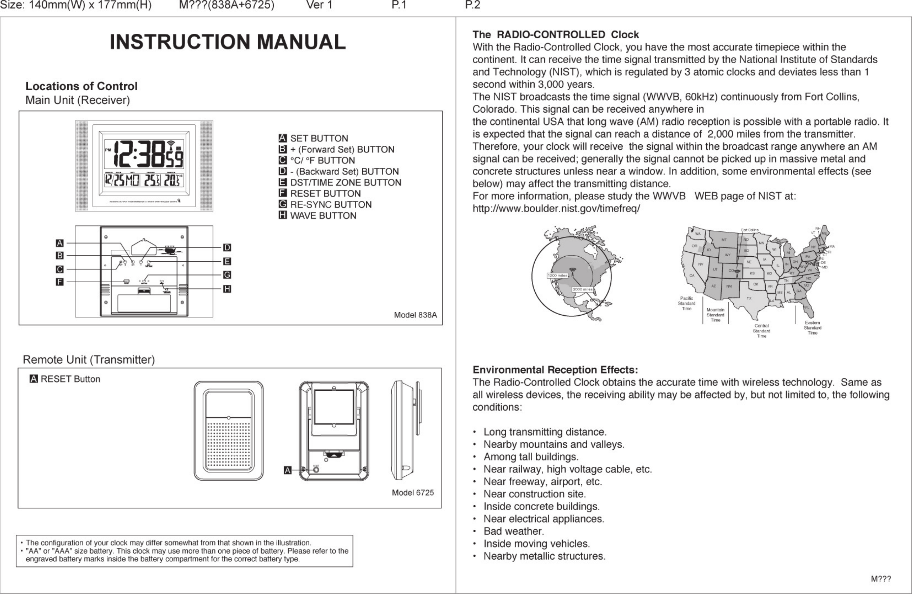 Electronics Tomorrow 838A170306 1-Channel RF (Rx) in/Remote Thermo Wallclock + RCC User Manual
