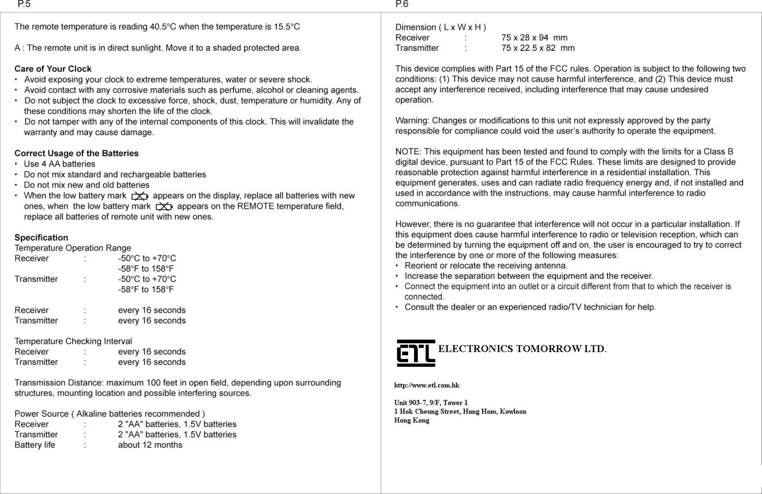 Electronics Tomorrow 944090807 Weather Station Receiver User Manual appendix 7