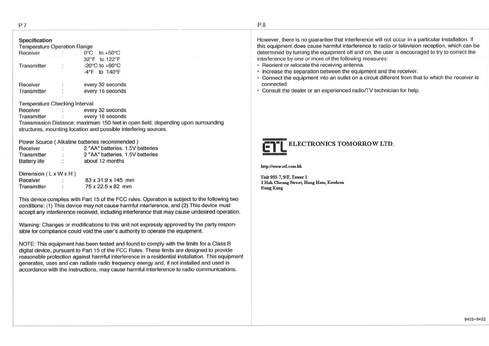Electronics Tomorrow 945190807 RF Thermo Transmitter User Manual