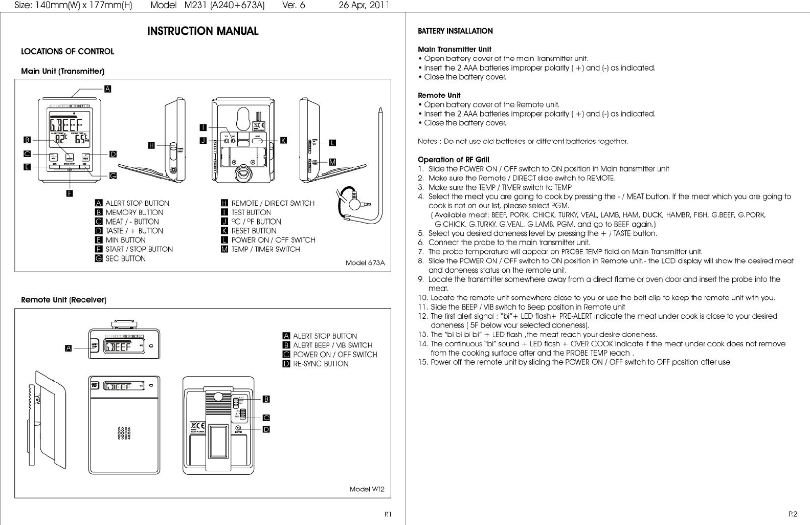 Electronics Tomorrow A240900411 433MHz RF Cooking Thermometer - Receiver User Manual