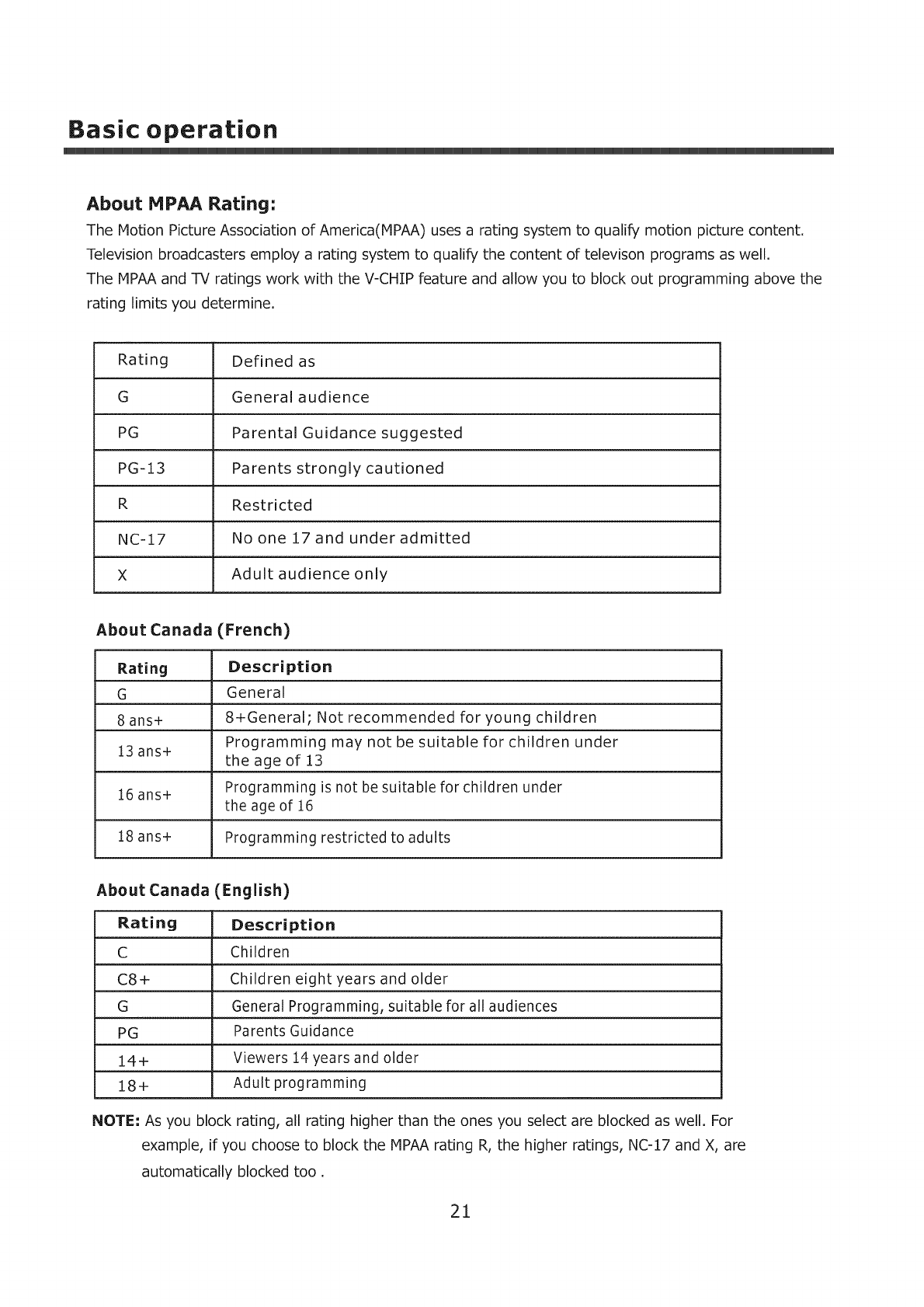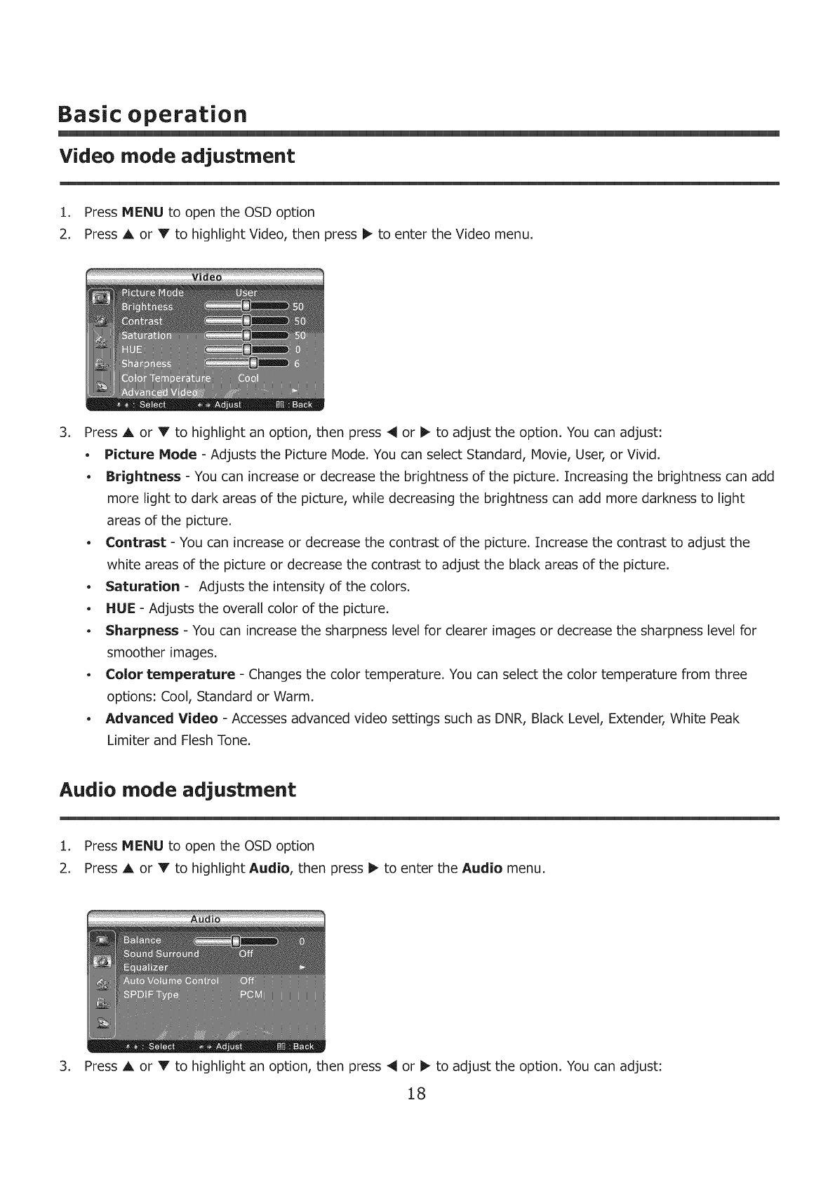 Audio mode adjustment ............................................................................................................18