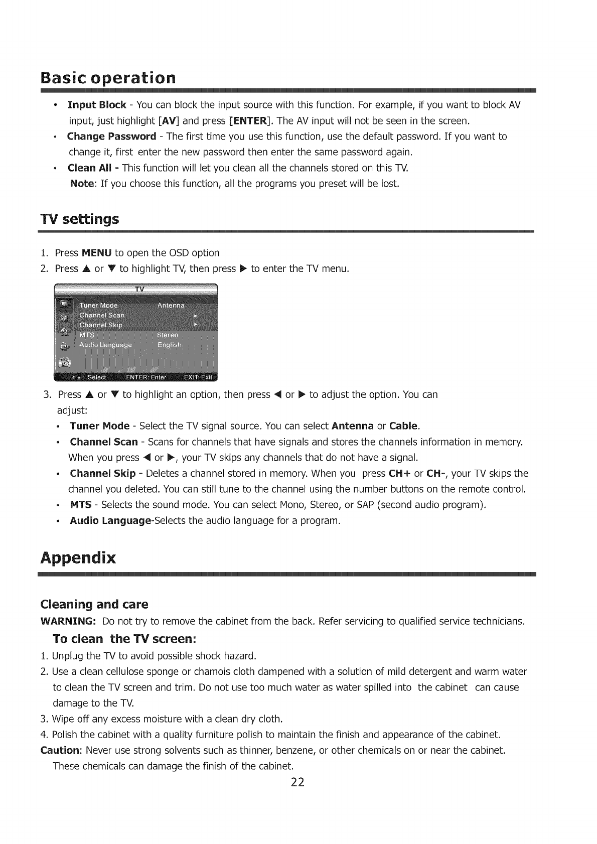TV settings .....................................................................................................................................22