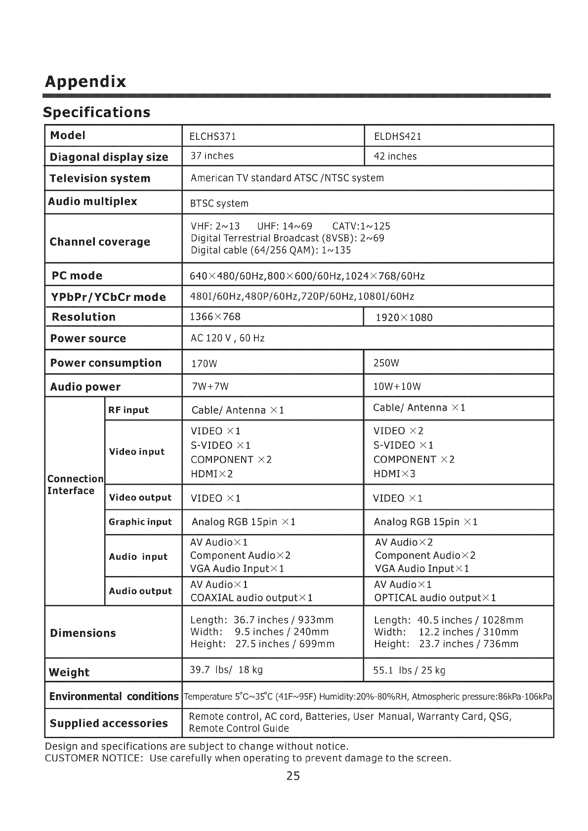 Model ELCHS371 ELDHS421