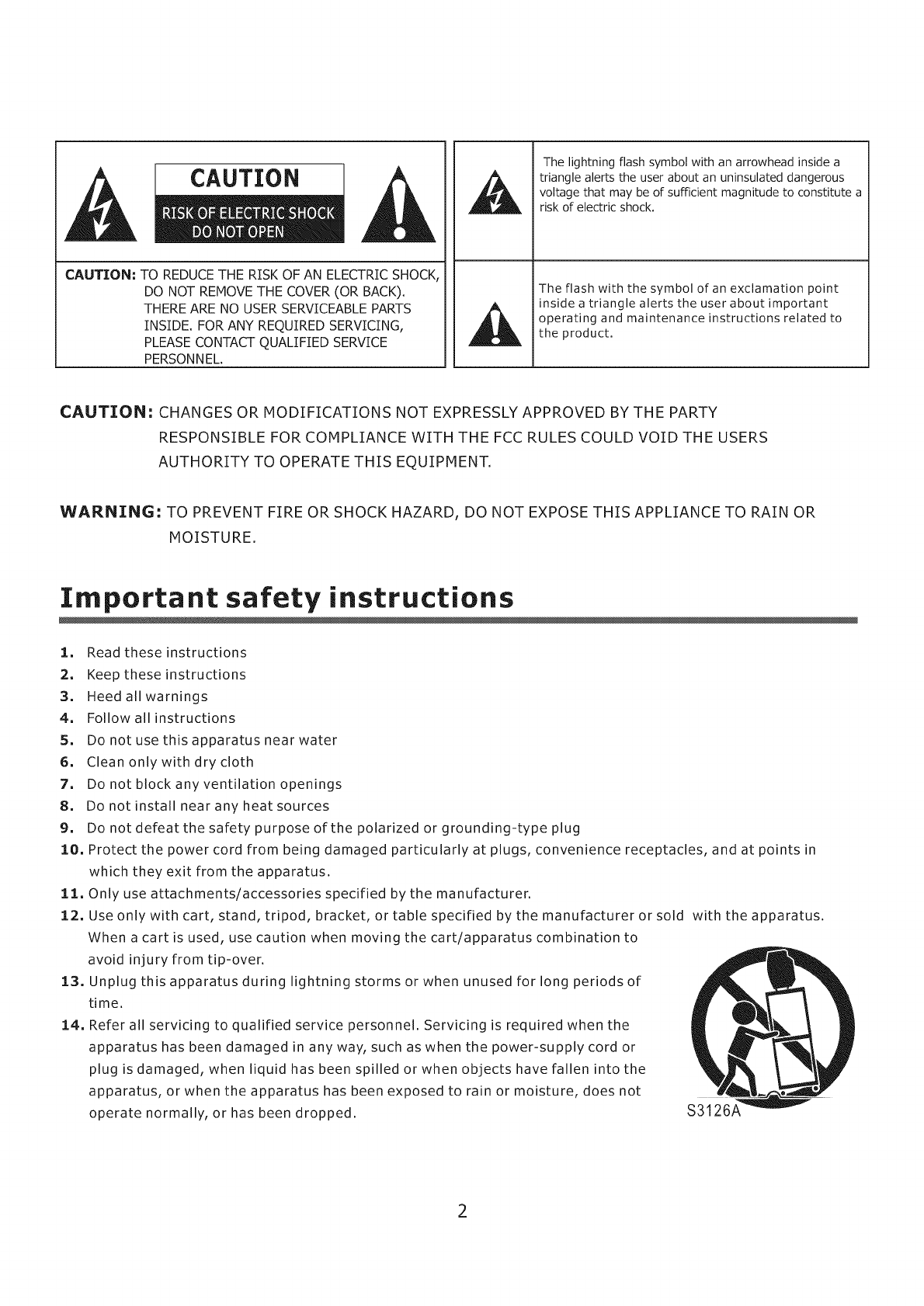 14. Refer all servicing to qualified service personnel. Servicing is required when the