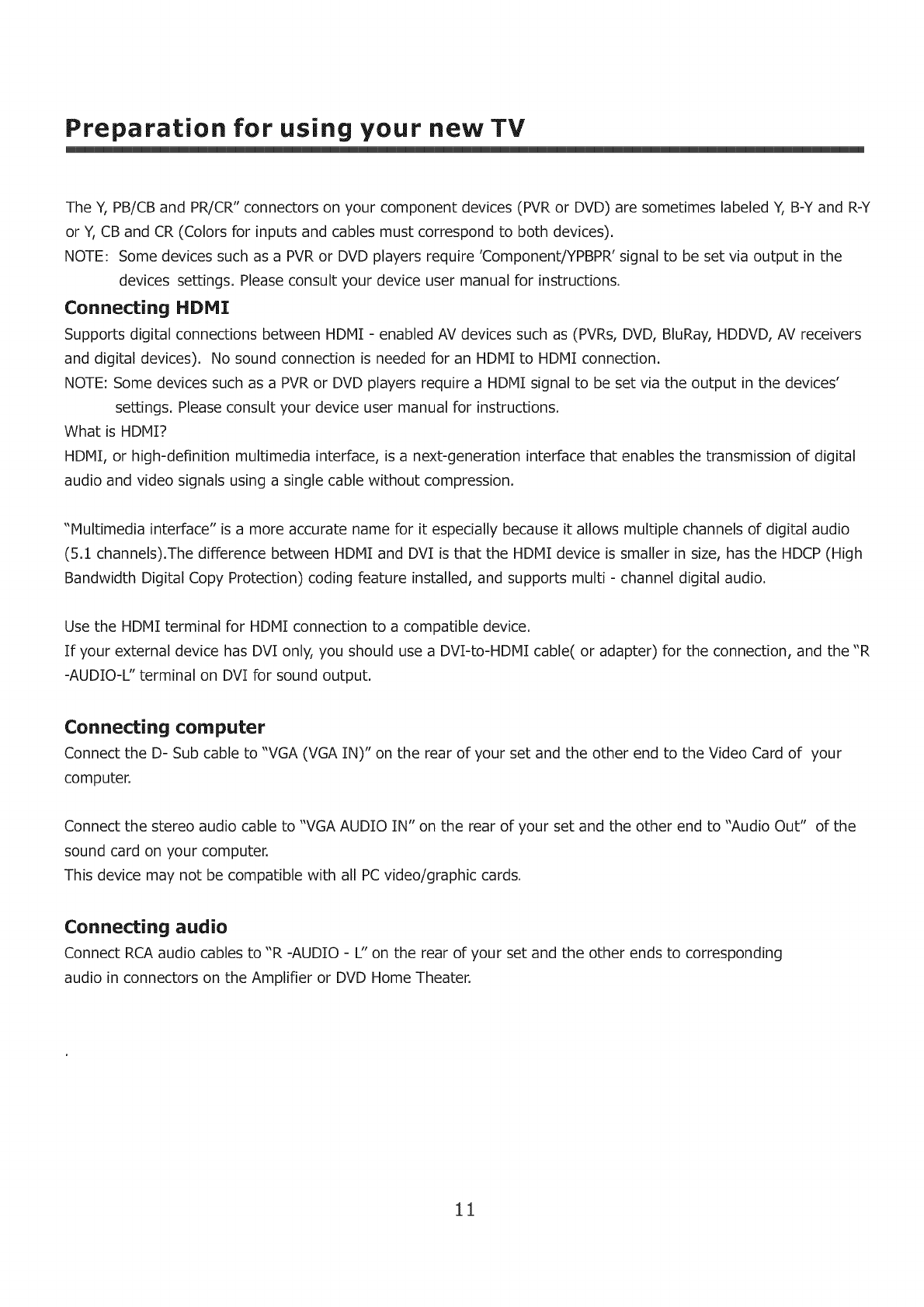 Preparation for using your new TV ...........................................................................................4