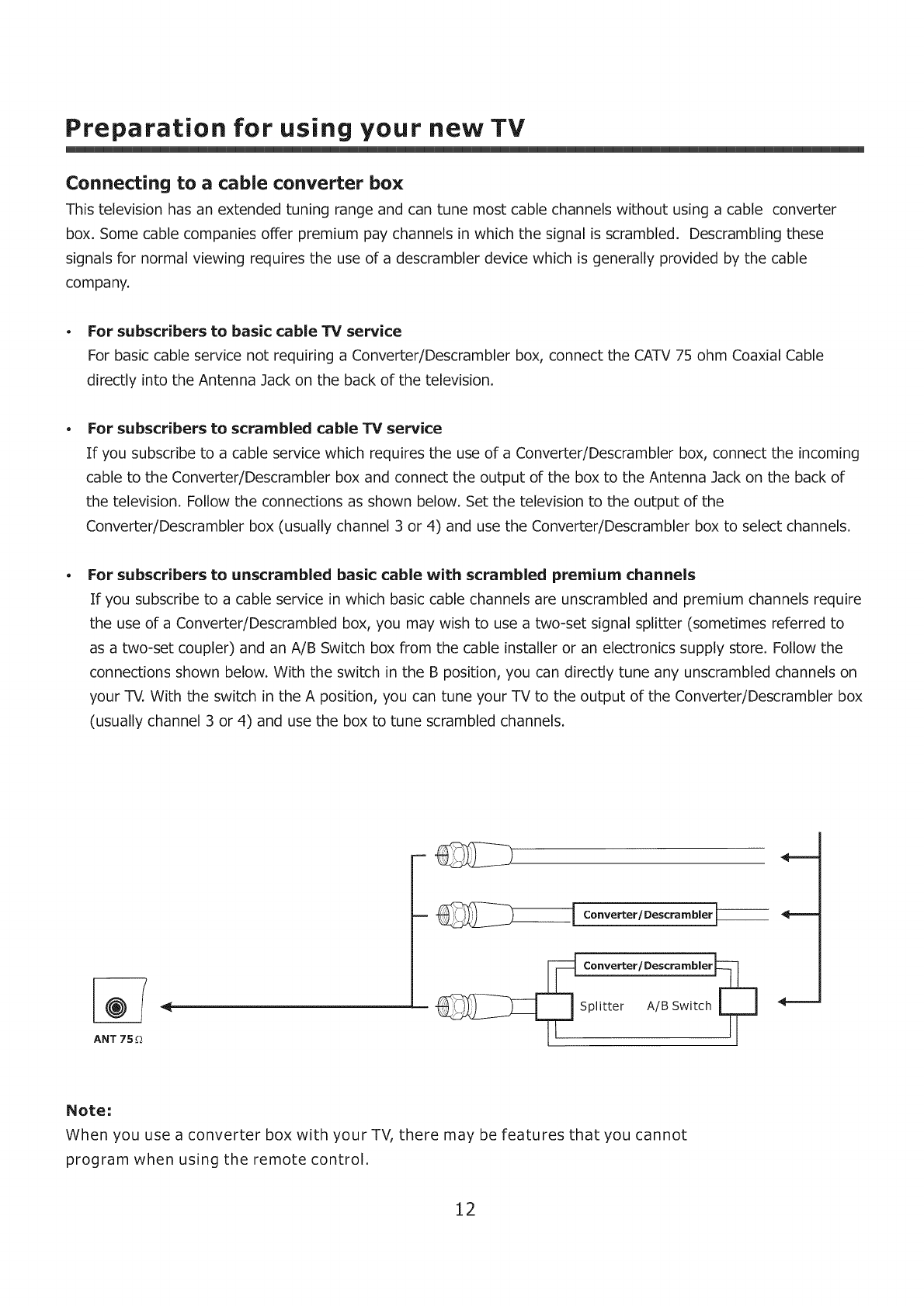 Connecting to a cable converter box ......................................................................................... 12