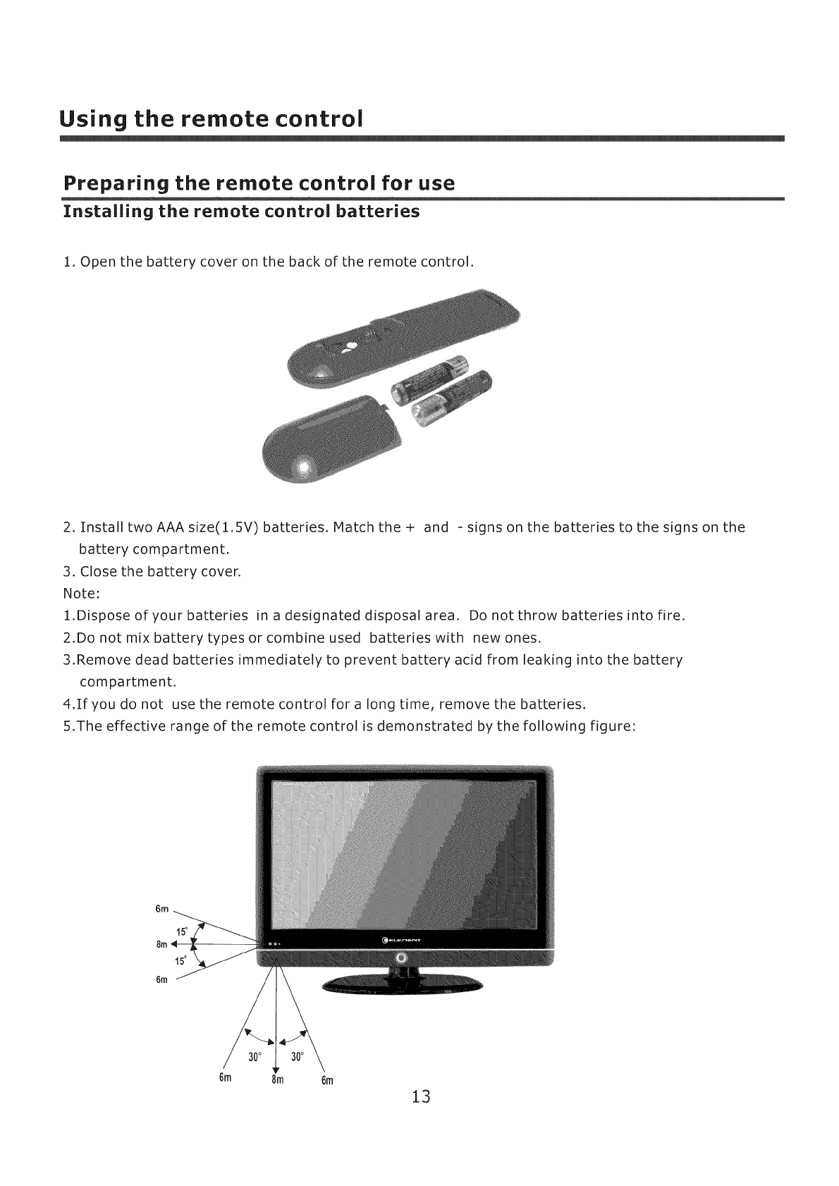 Preparing the remote control for use ...................................................................................13
