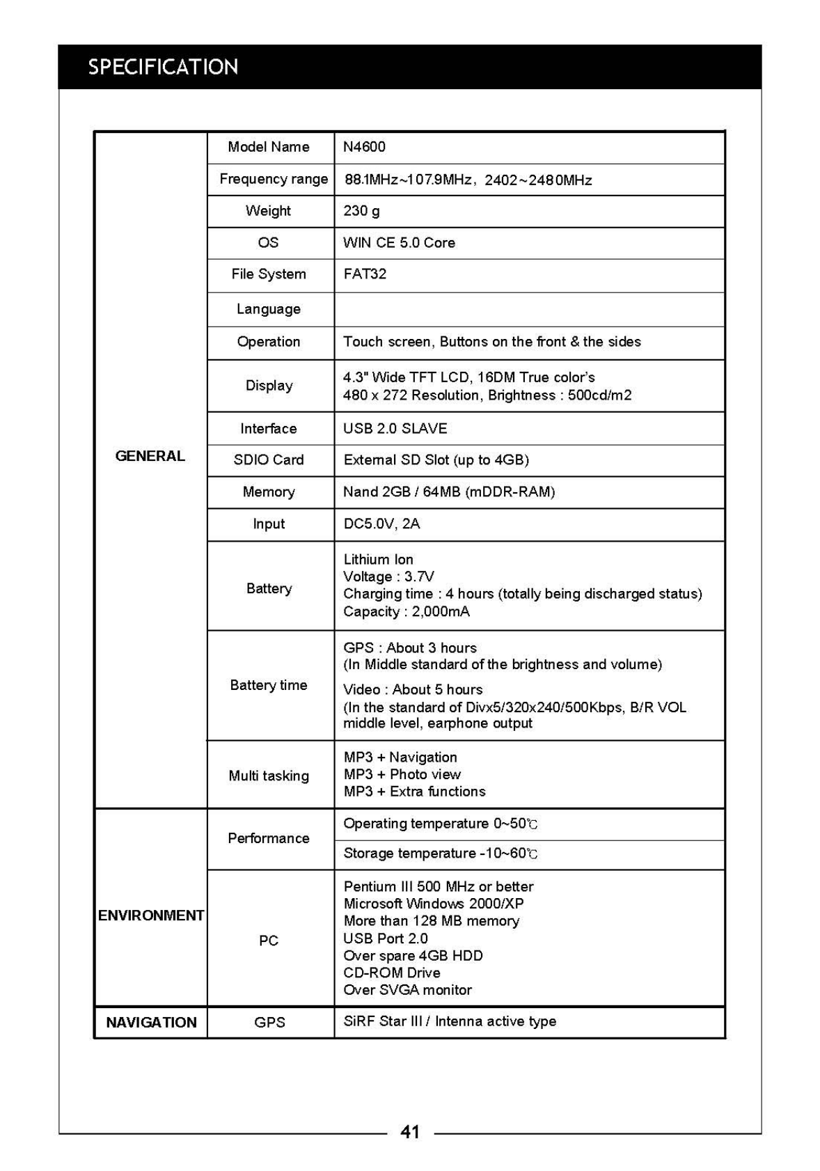 Elentec N4600 PORTABLE NAVIGATION WITH BLUETOOTH AND FM TX User Manual
