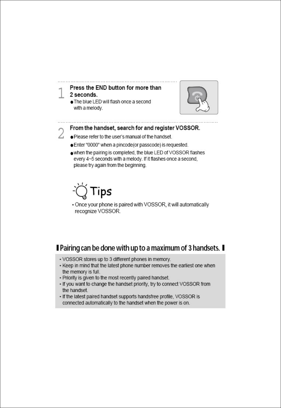 VOSSOR Can be used as a handsfree unit or a headset as the situation