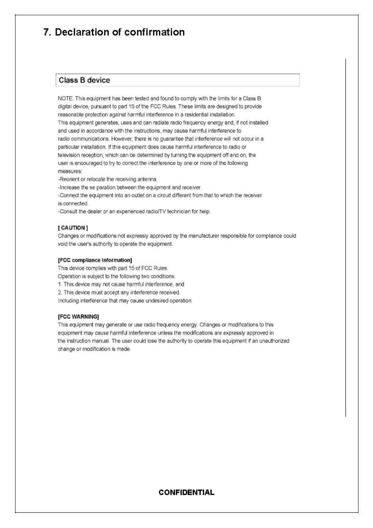 7. DECLARATION OF CONFIRMATION