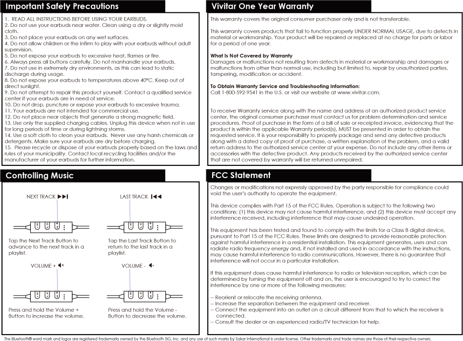 Elita VOB40071BT BLUETOOTH EARBUDS User Manual