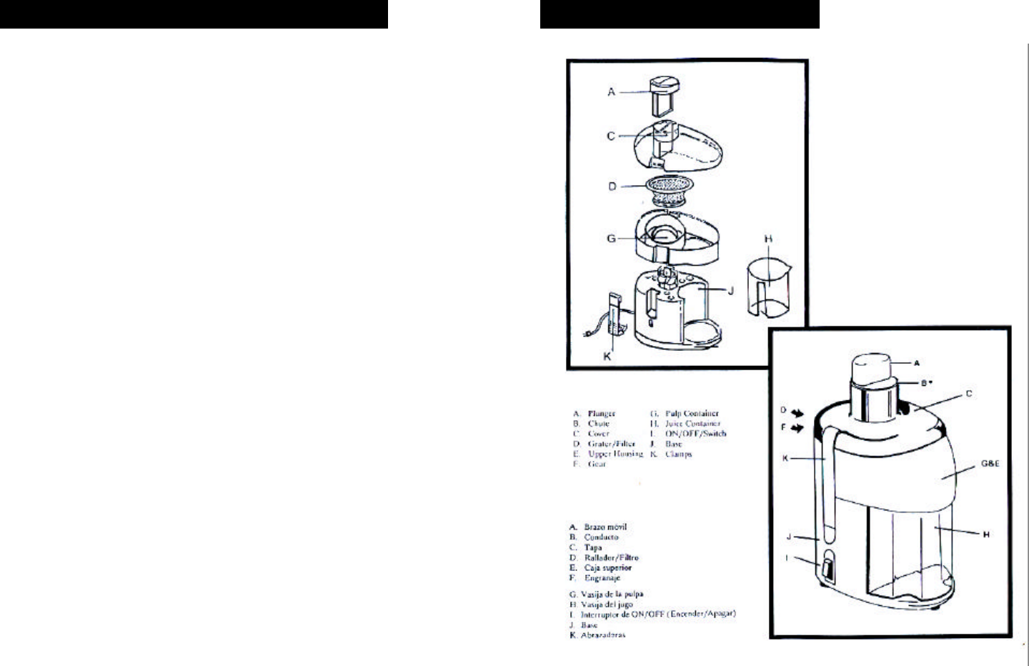 CAUTION: Be sure to unplug the A.C. cord when the Juice Extractor is not
