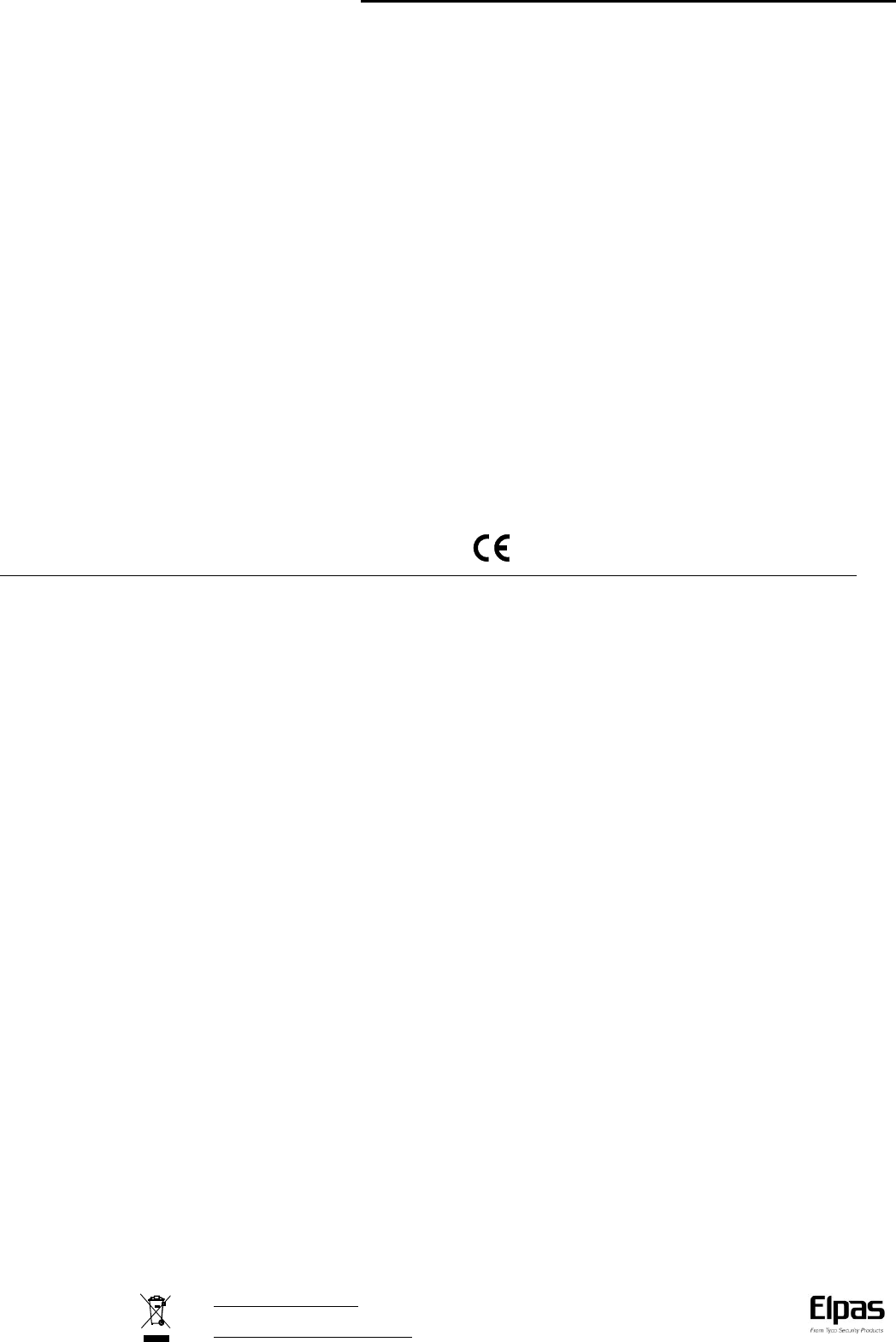Any modifications to this equipment without prior written consent of Elpas Solutions Ltd. will void all warranties including the pertinent regulatory certifications and as