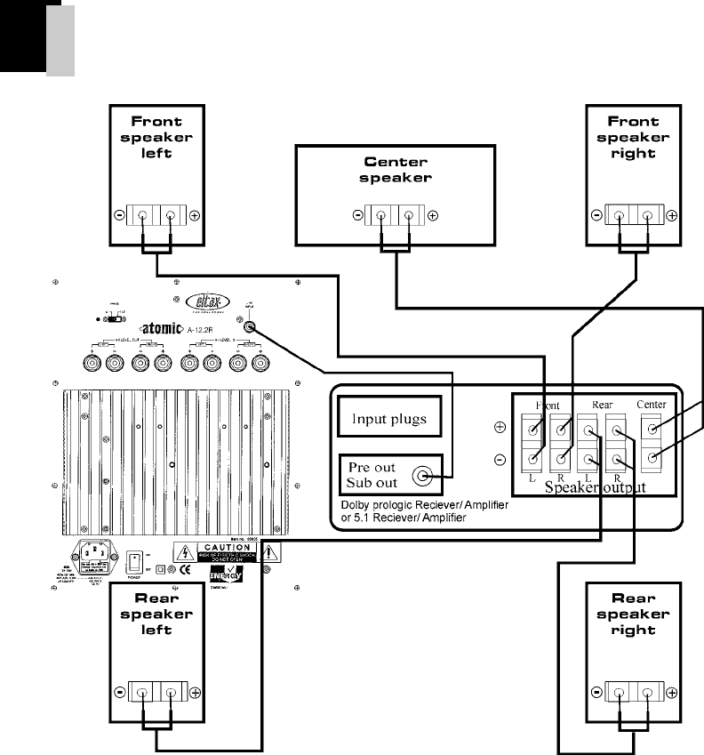 laser disc or hi- VCR. Connect them to a Dolby® Pro Logic receiver or amplier and 5 loudspeakers.