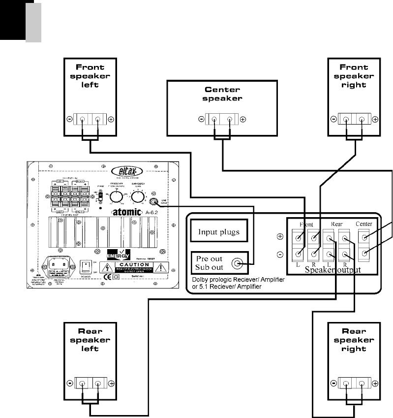 laser disc or hi- VCR. Connect them to a Dolby® Pro Logic receiver or amplier and 5 loudspeakers.