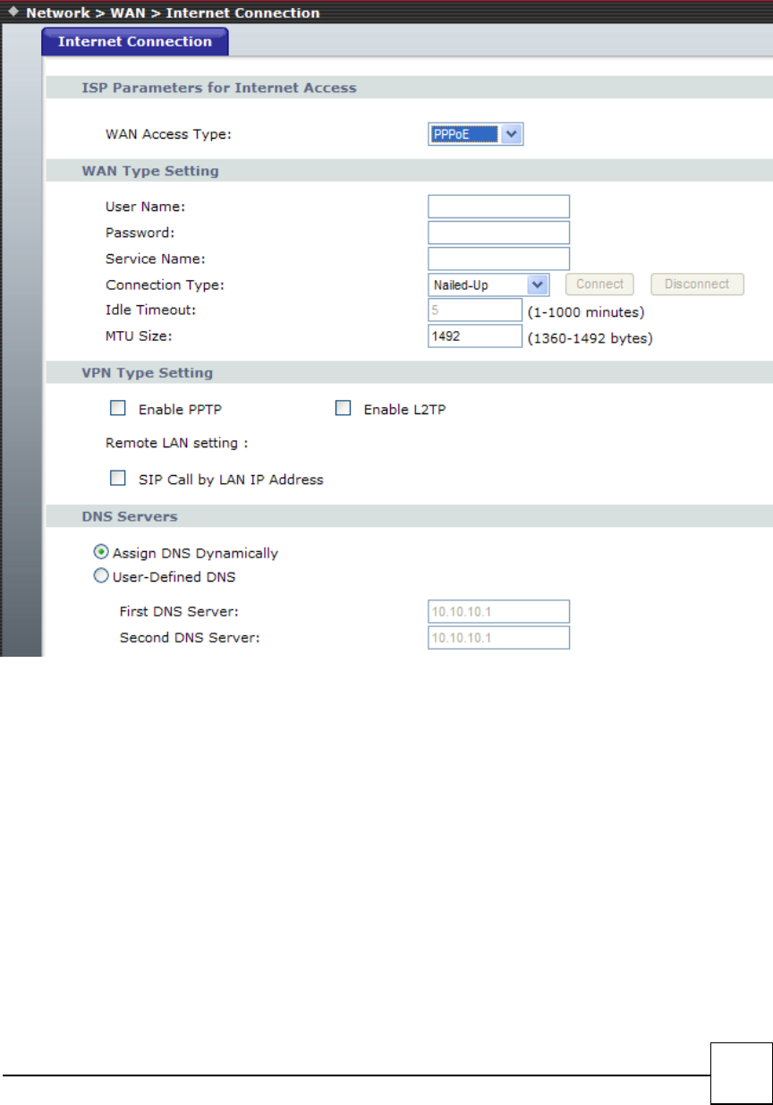 If your WAN connection is set up for PPPoE, there will be a Connect button and Disconnect button. Use