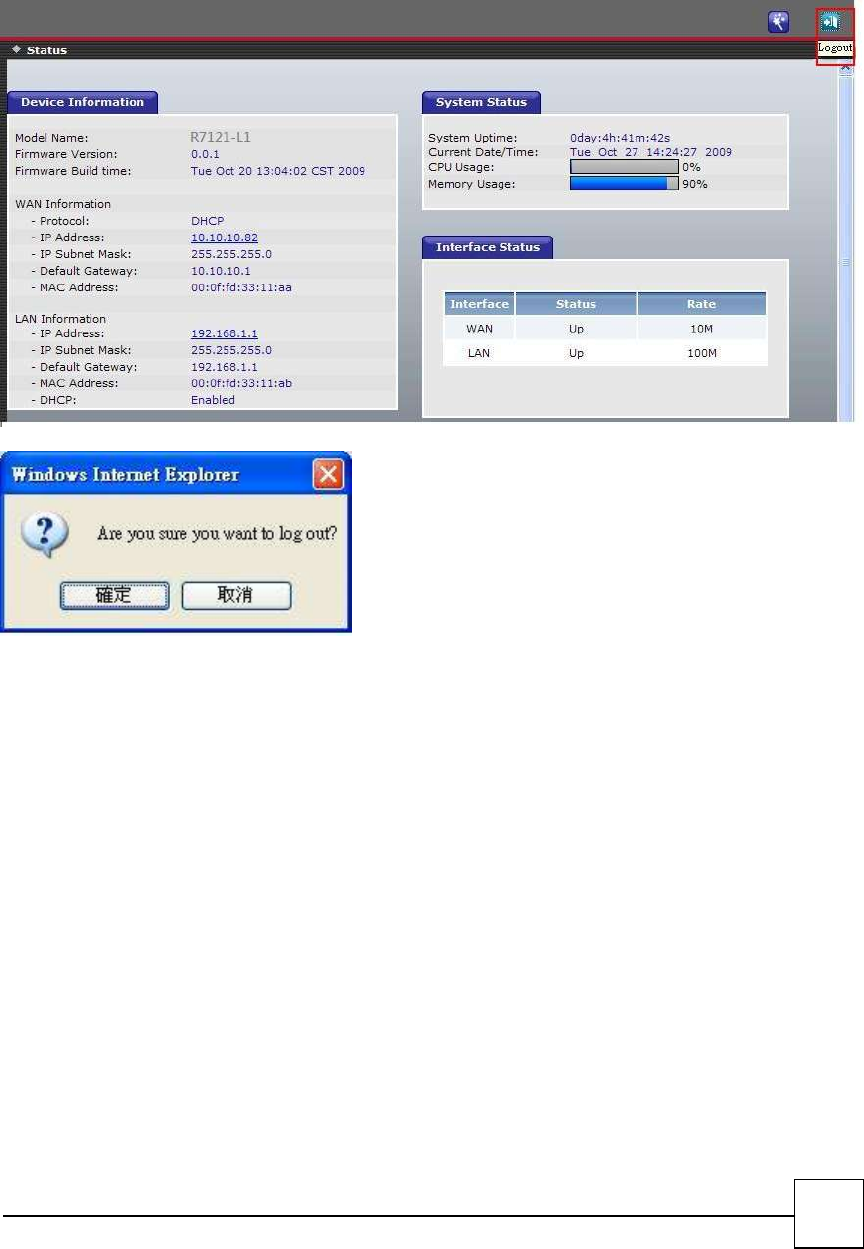 If you need to logout administrator right for web-access, please click the Logout link. The web system
