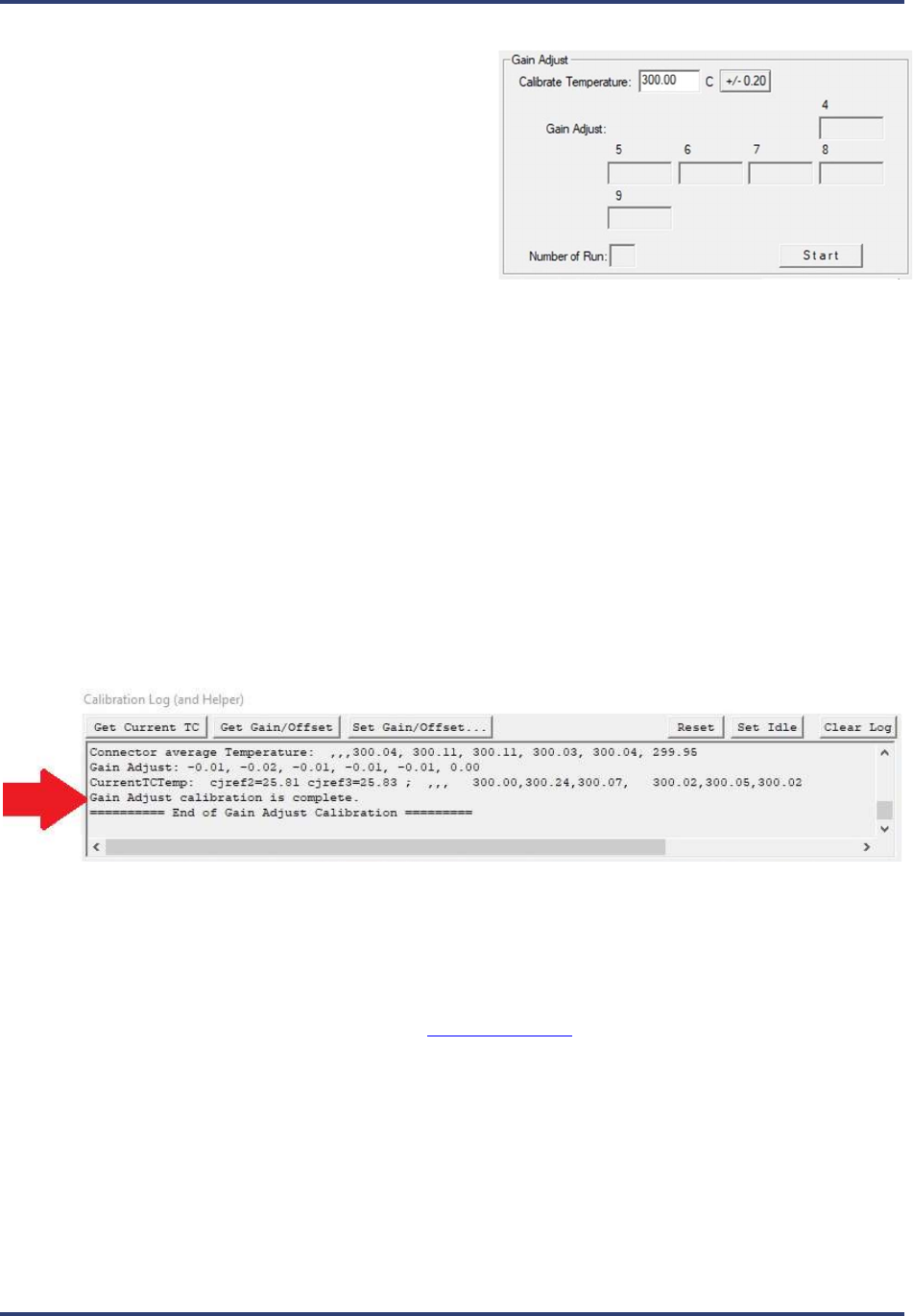 When the software completes the gain adjustment, a status messages appears in the Calibration Log area