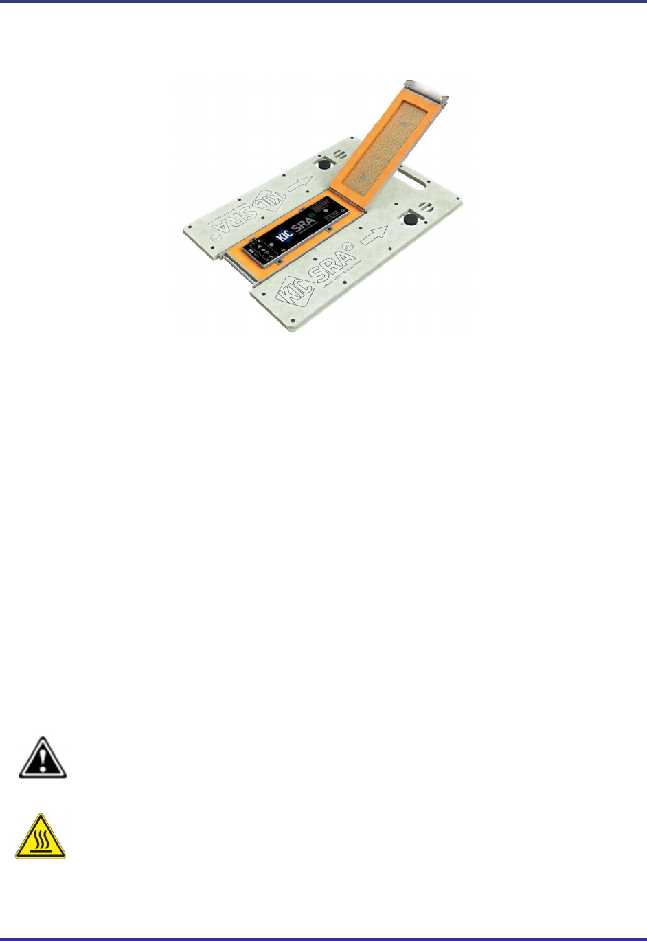 This symbol indicates HOT SURFACE on the SRA shield and pallet. It is used in this guide anywhere