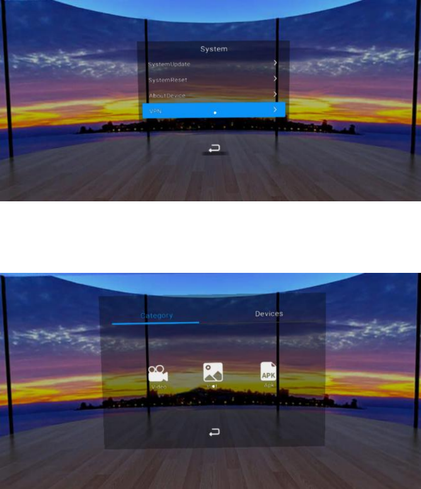 3) There are three patterns in VR video: 2D、3D、pano360, you can click the menu option down