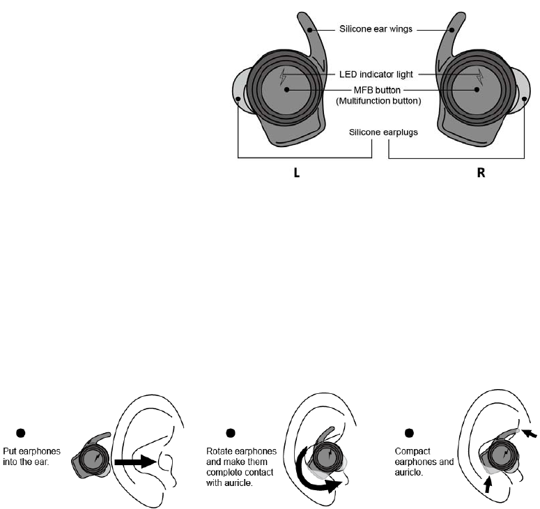 2.DoubleclickanyMFBbutttonofthetwoearphones,thenoneearphonewillbewithredlightand