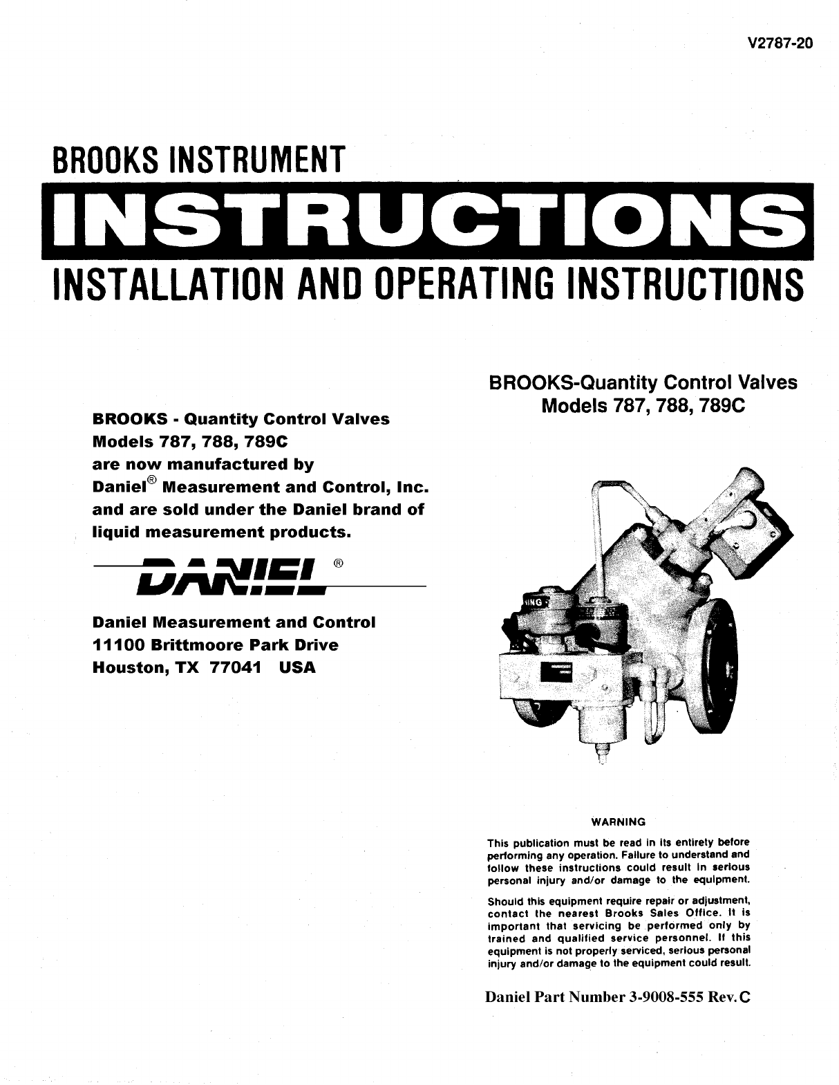Emerson Process Management Electric Co Video Game Controller 787 Users Manual Daniel Quantity Control Valves S 787, 788, 789C Installtion And Operating Instructions