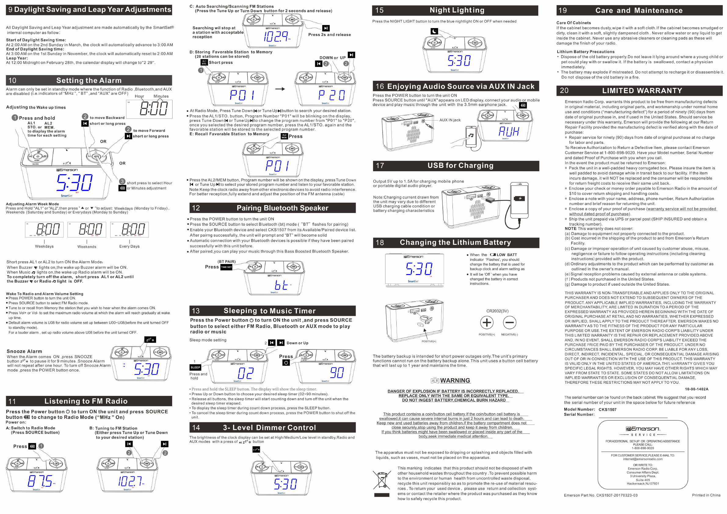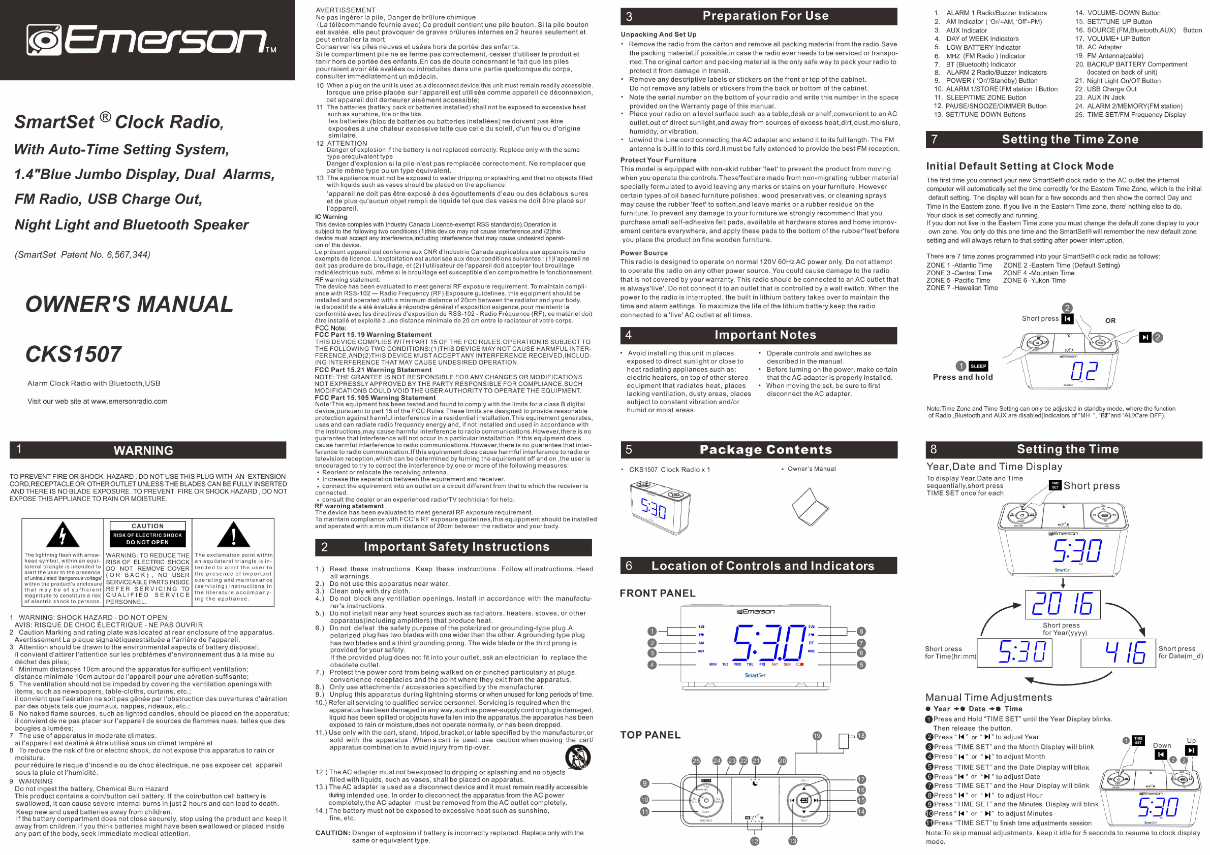 Emerson Radio CKS1507 Alarm Clock Radio with Bluetooth, USB User Manual