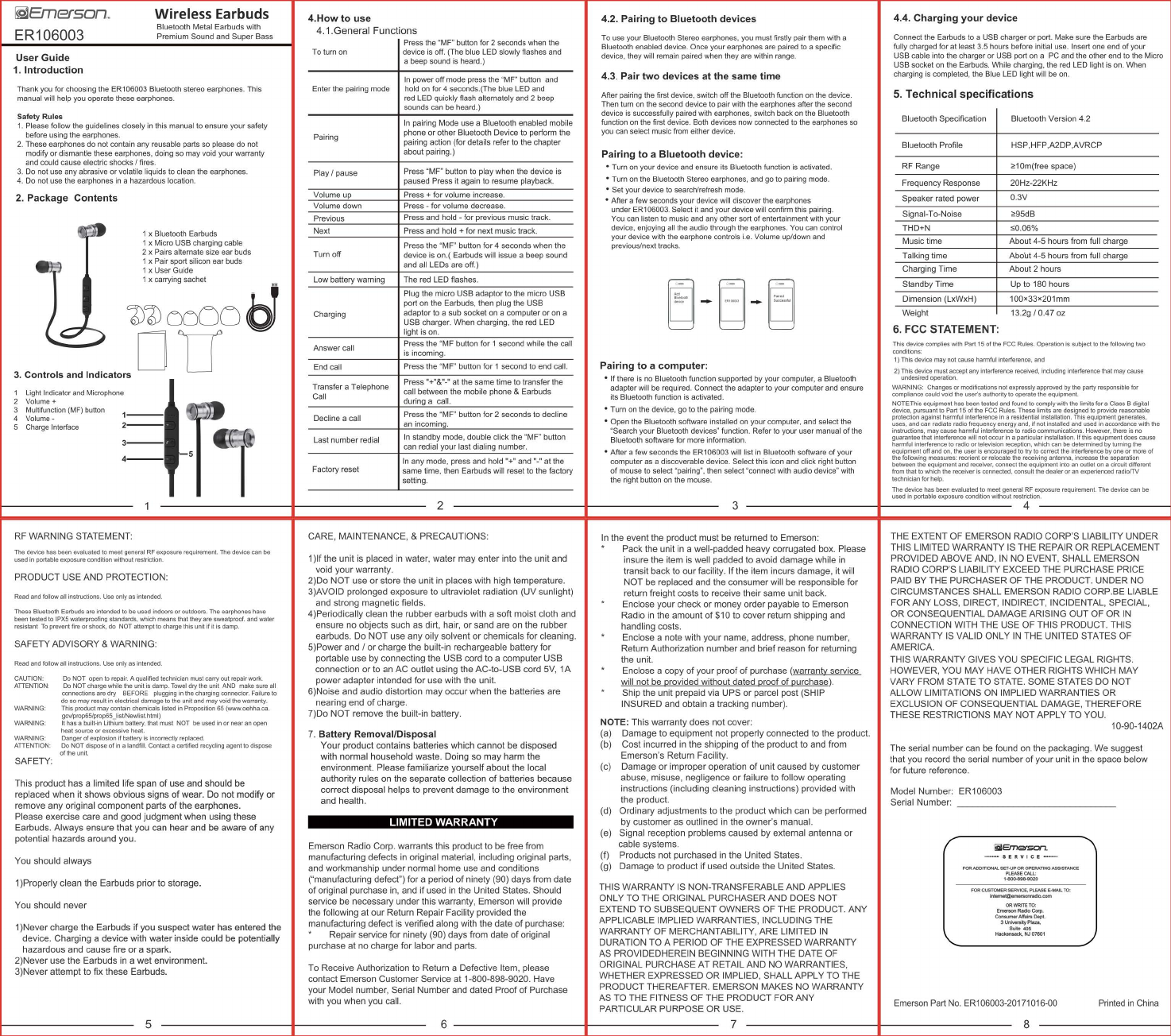 Emerson Radio ER106002 Wireless Earbuds User Manual