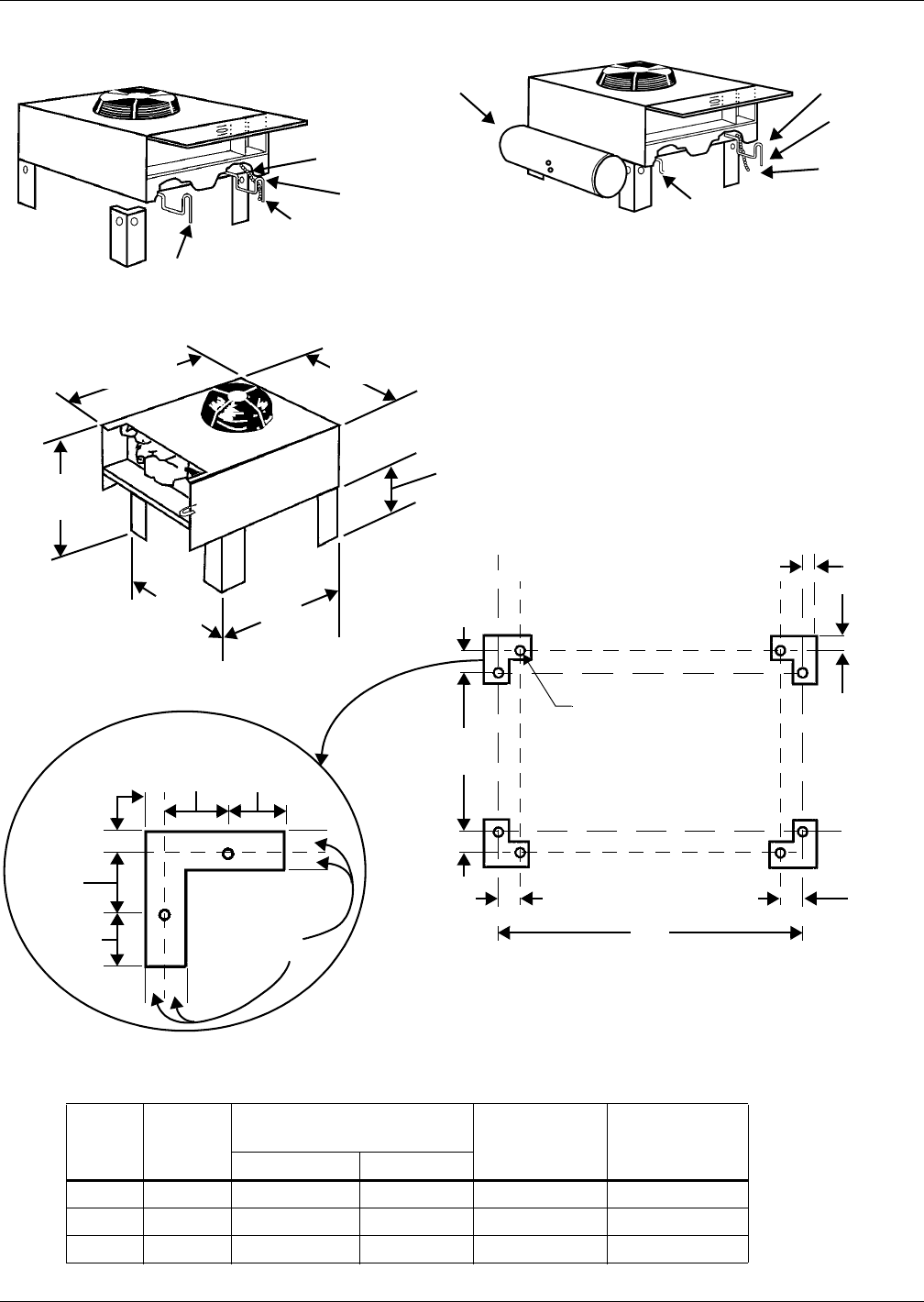 - Table 28 Cabinet and floor planning dimensional data - prop fan condensing modules, top air discharge