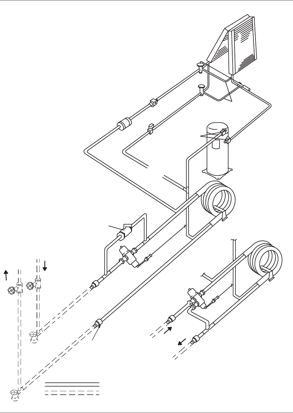 - Figure 4 Piping connections for air-cooled units - Downflow models