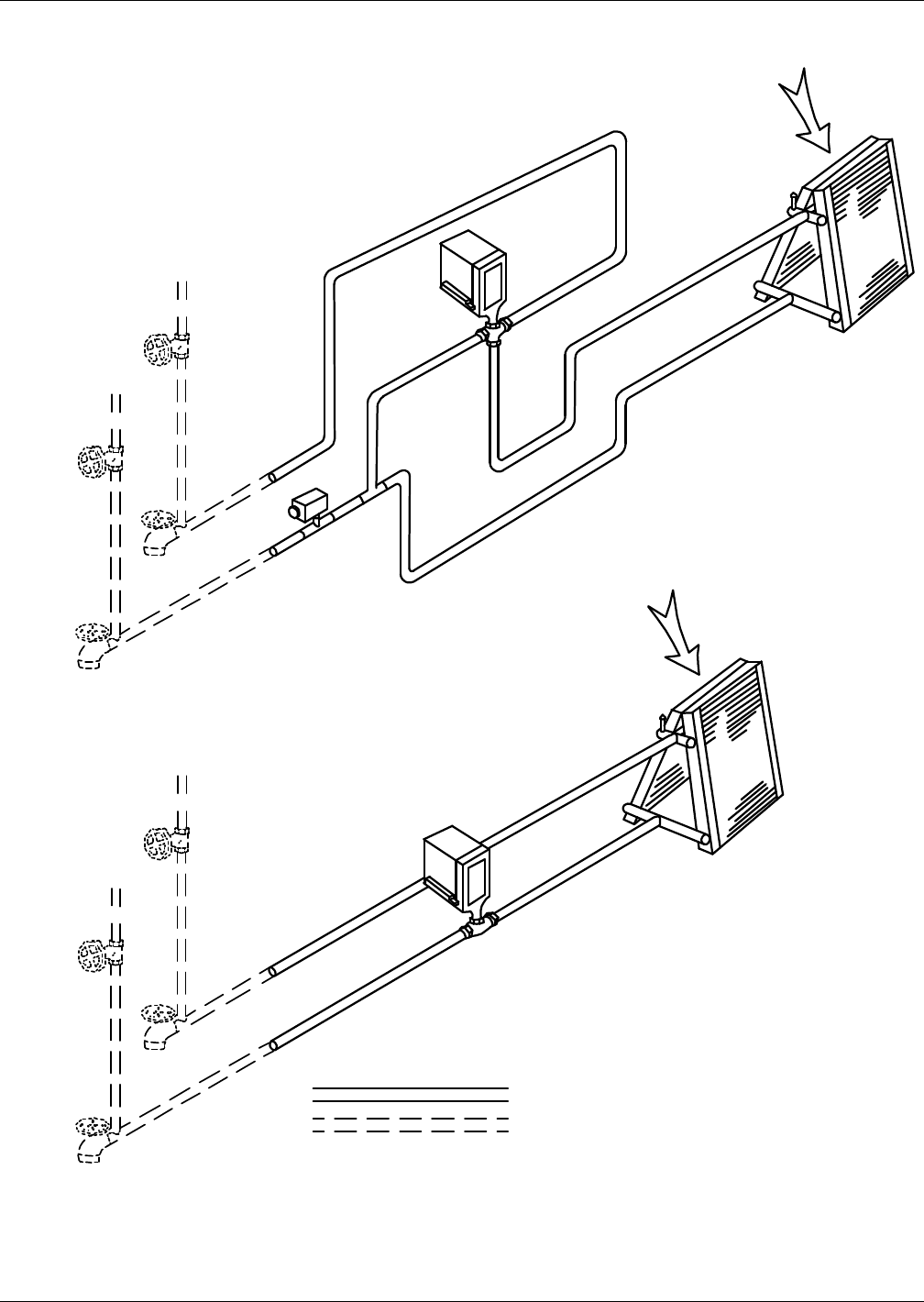 - Figure 9 Piping connections for water/glycol and GLYCOOL units - Upflow models