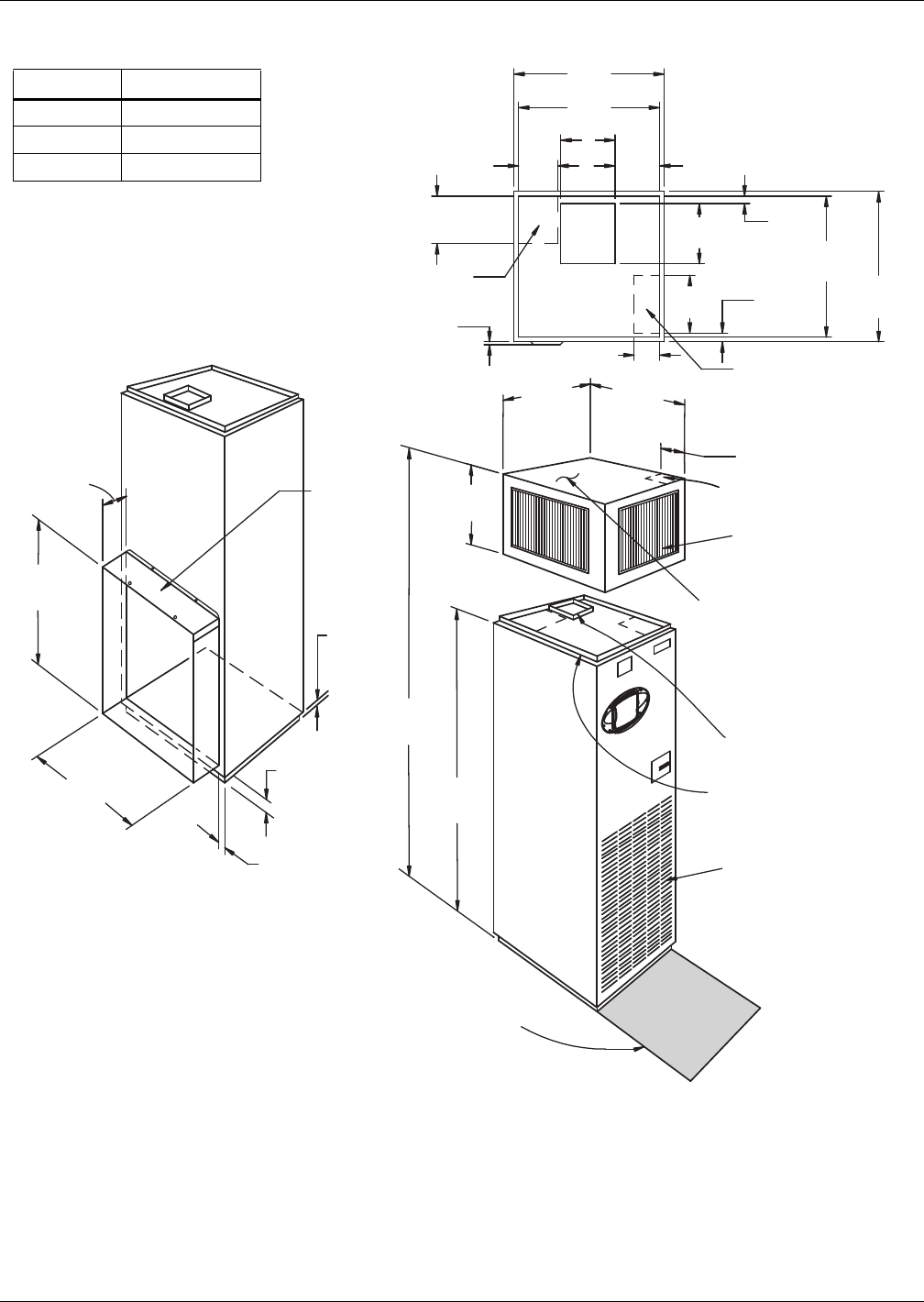 - Table 26 Horizontal air discharge cabinet and floor planning dimensional data