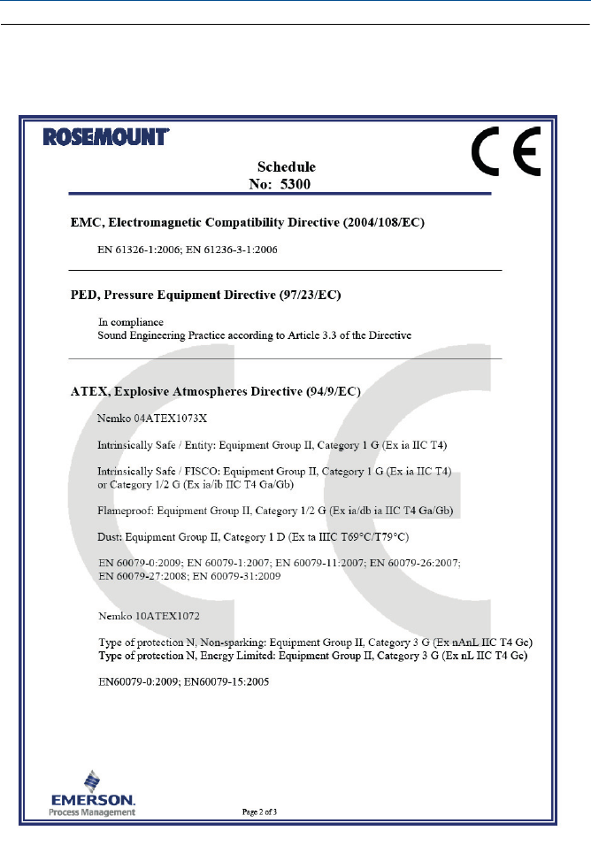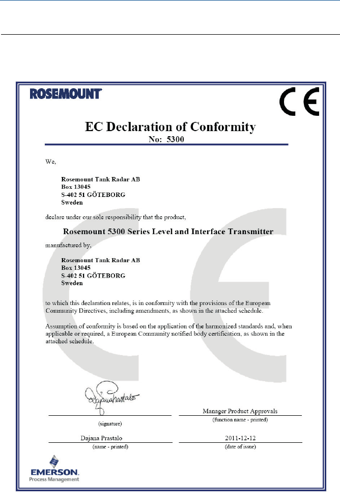 For detailed information on product certificates, refer to the Rosemount 5300 Series