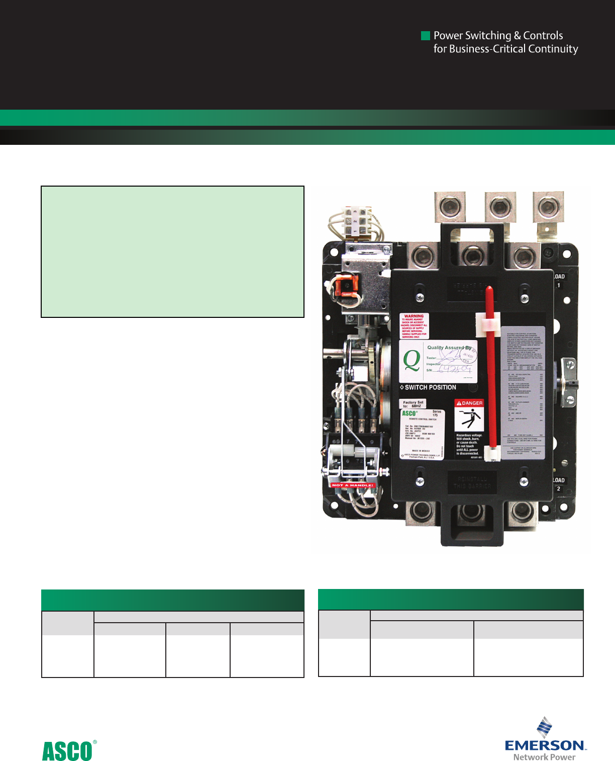 Emerson Asco 175 Remote Control Switch Single Source Dual Load Brochures And Data Sheets ASCO_175_Remote_Control_Switch_Pub_3237