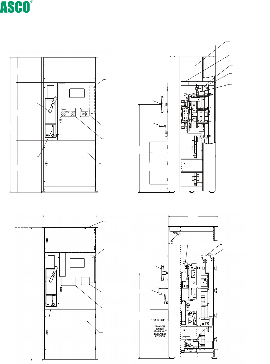 2. Recommended clearance to enclosure: 3 feet (914mm) from rear, 4 feet (1219mm) from front (25 inches required for transfer switch drawout).