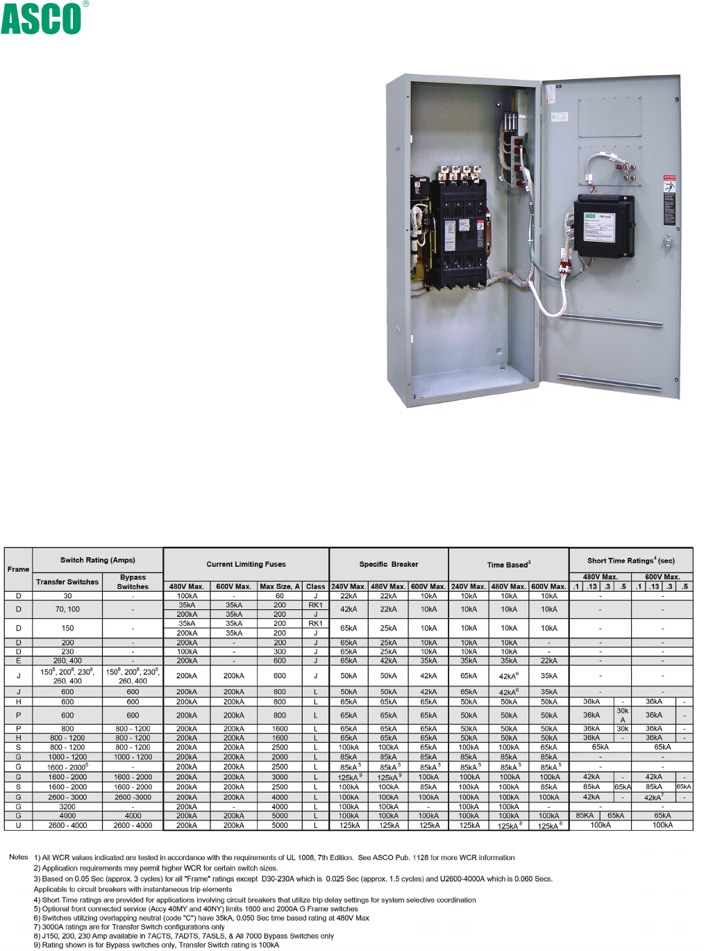 150, 200, 230, 260, 400, 600 3 with A/B 1135 (515) Contact ASCO