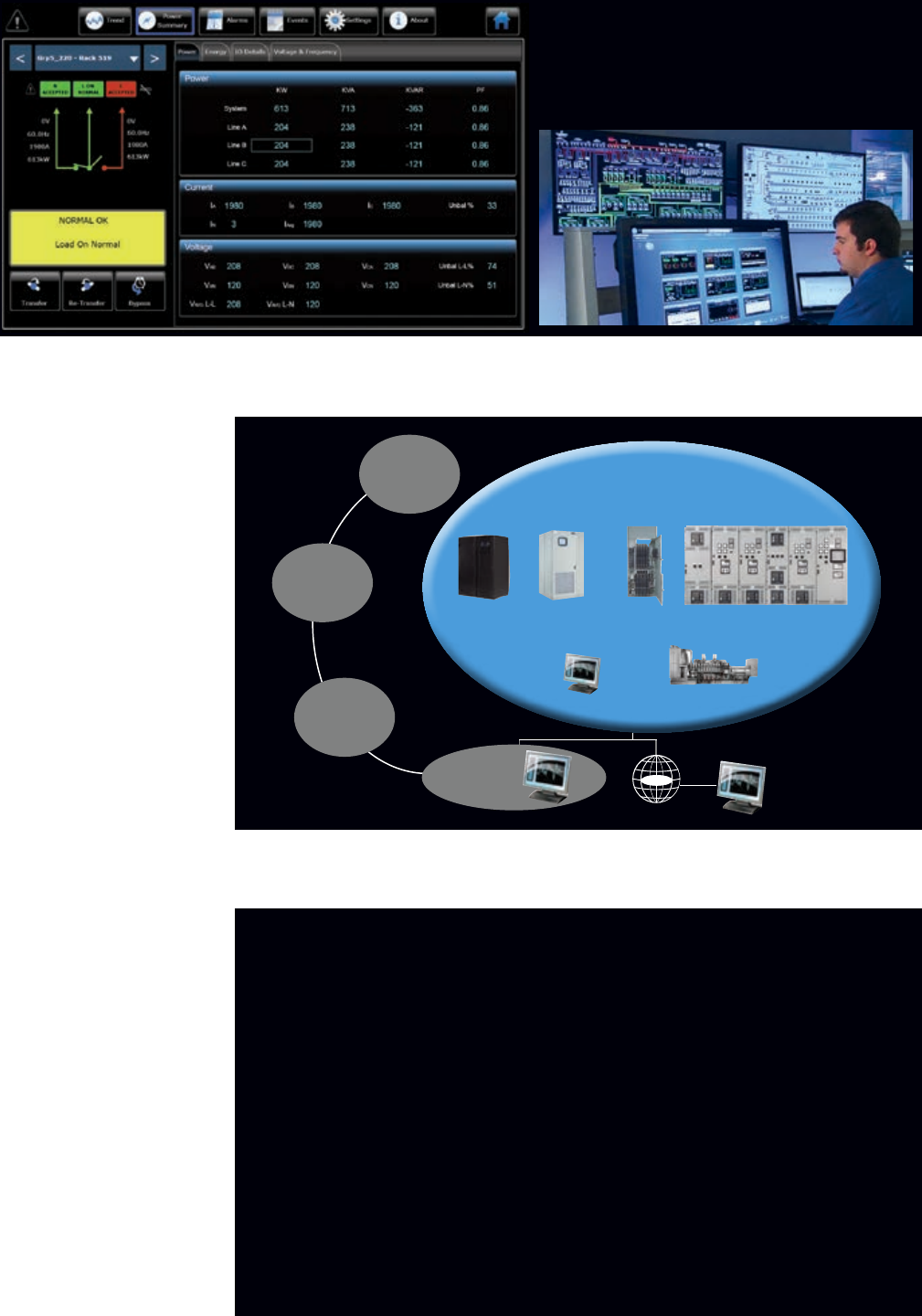 loadbanks, distribution and other gear. It also integrates with building management systems.