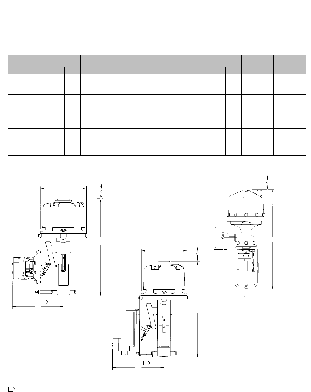 1The C dimension listed in the table is for the actuator with the FIELDVUE digital valve controller. Add to this dimension for 3620JP positioners. Subtract from this
