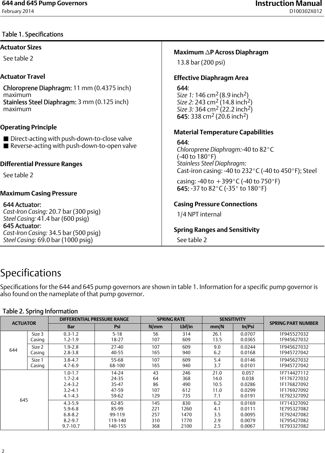Specifications for the 644 and 645 pump governors are shown in table 1. Information for a specific pump governor is