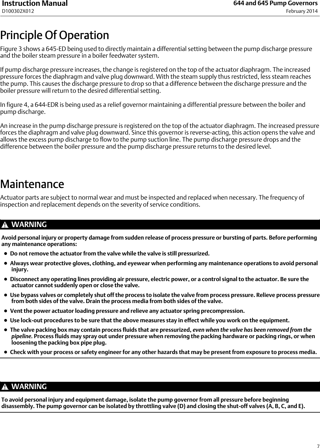 Do not install, operate, or maintain 644 or 645 governors without being fully trained and qualified in valve, actuator,