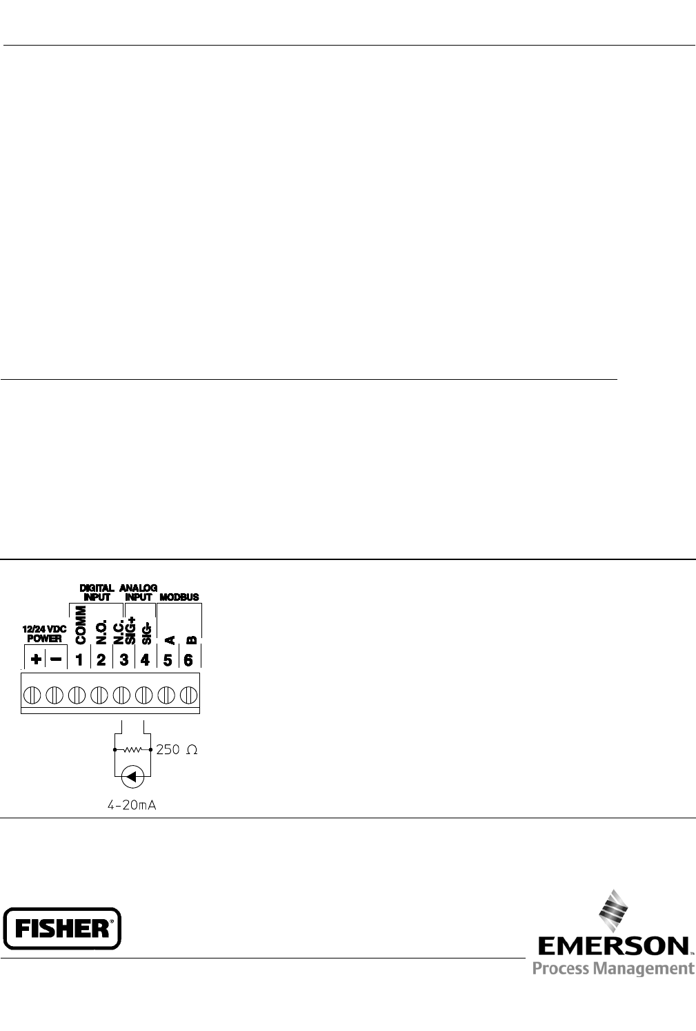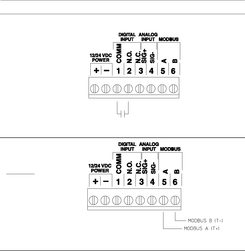 2. Install a 1/4 or 1/2 watt, 250Ωresistor between terminals 3 and 4 (Analog+ and Analog )whenlandingthe420mA